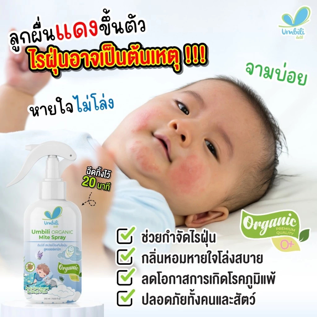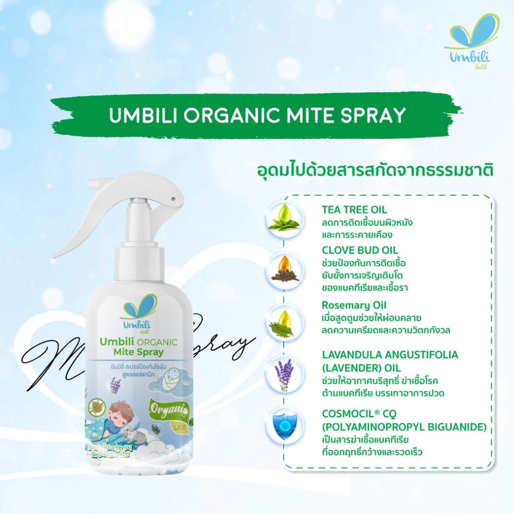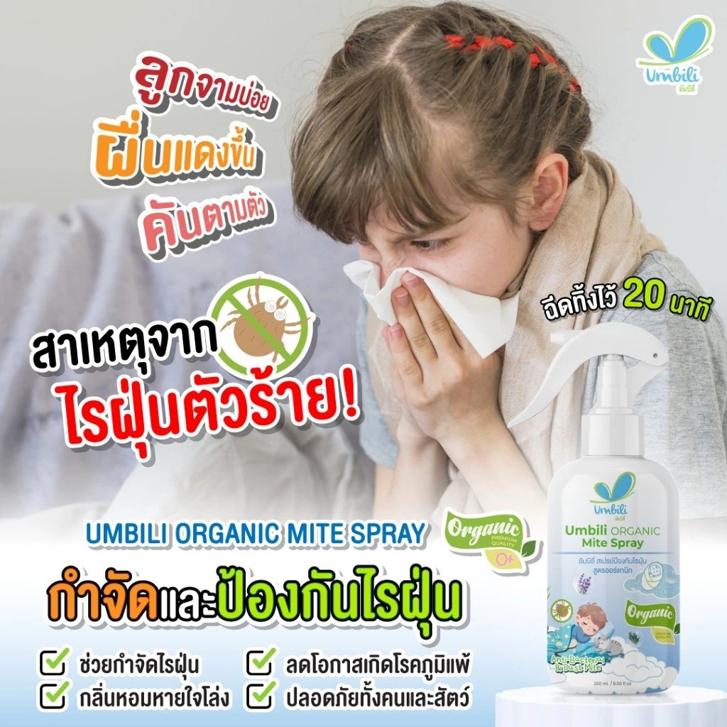 UMBILI ORGANIC MITE SPRAY (ฉุนฉุน) สเปรย์กำจัดไรฝุ่น สูตรออร์แกนิก อ่อนโยนจากธรรมชาติ ปริมาณ 250 ml.