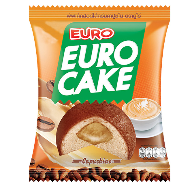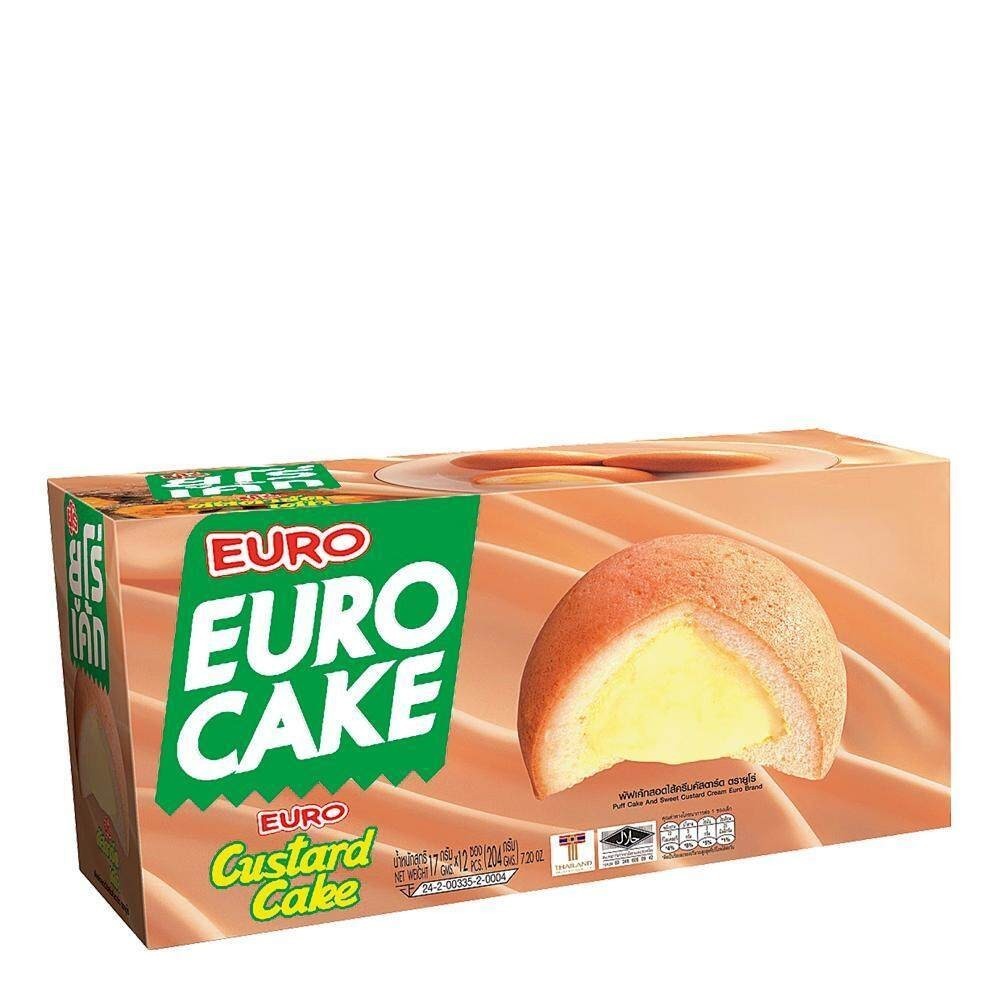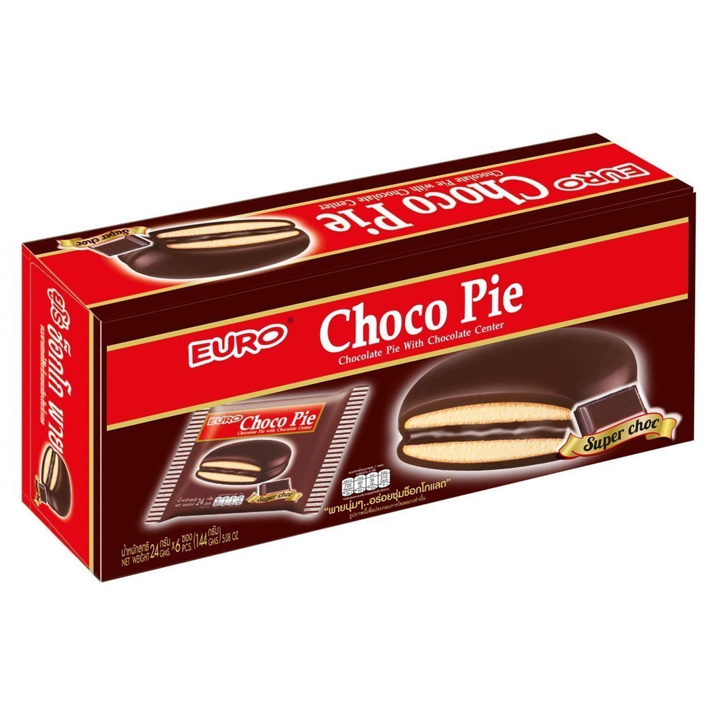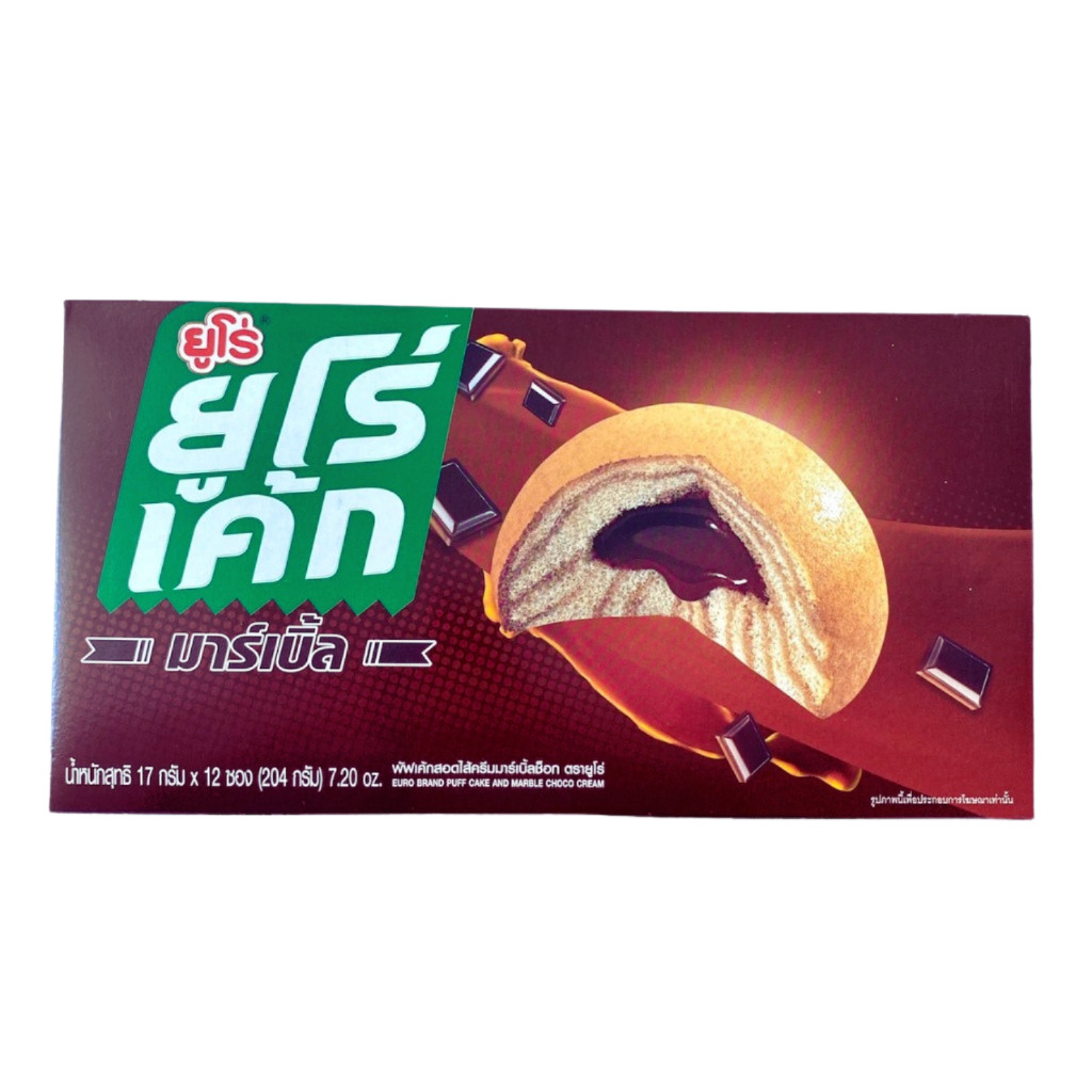 Euro Cake พัฟเค้กสอดไส้ เคลือบช็อกโกแลต ขนมพายสอดไส้ 12 ซอง หอมอร่อย รสช็อกโกแลต คัสตาร์ด นมฮอกไกโด