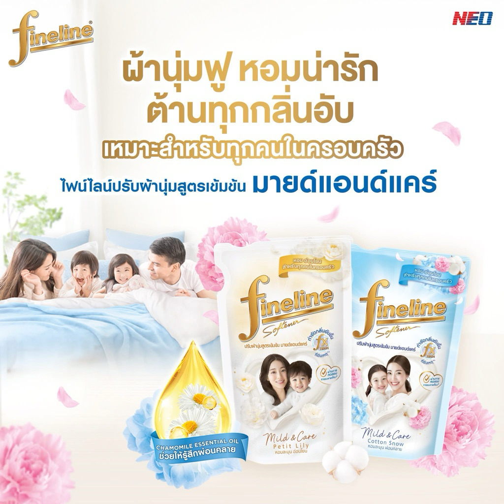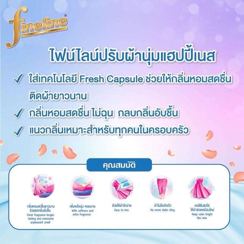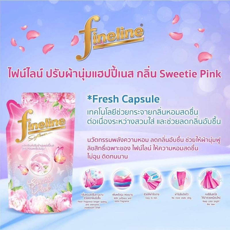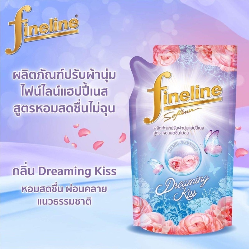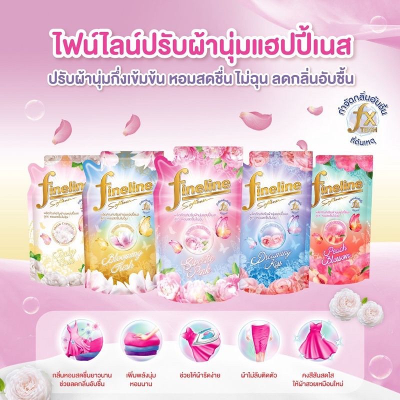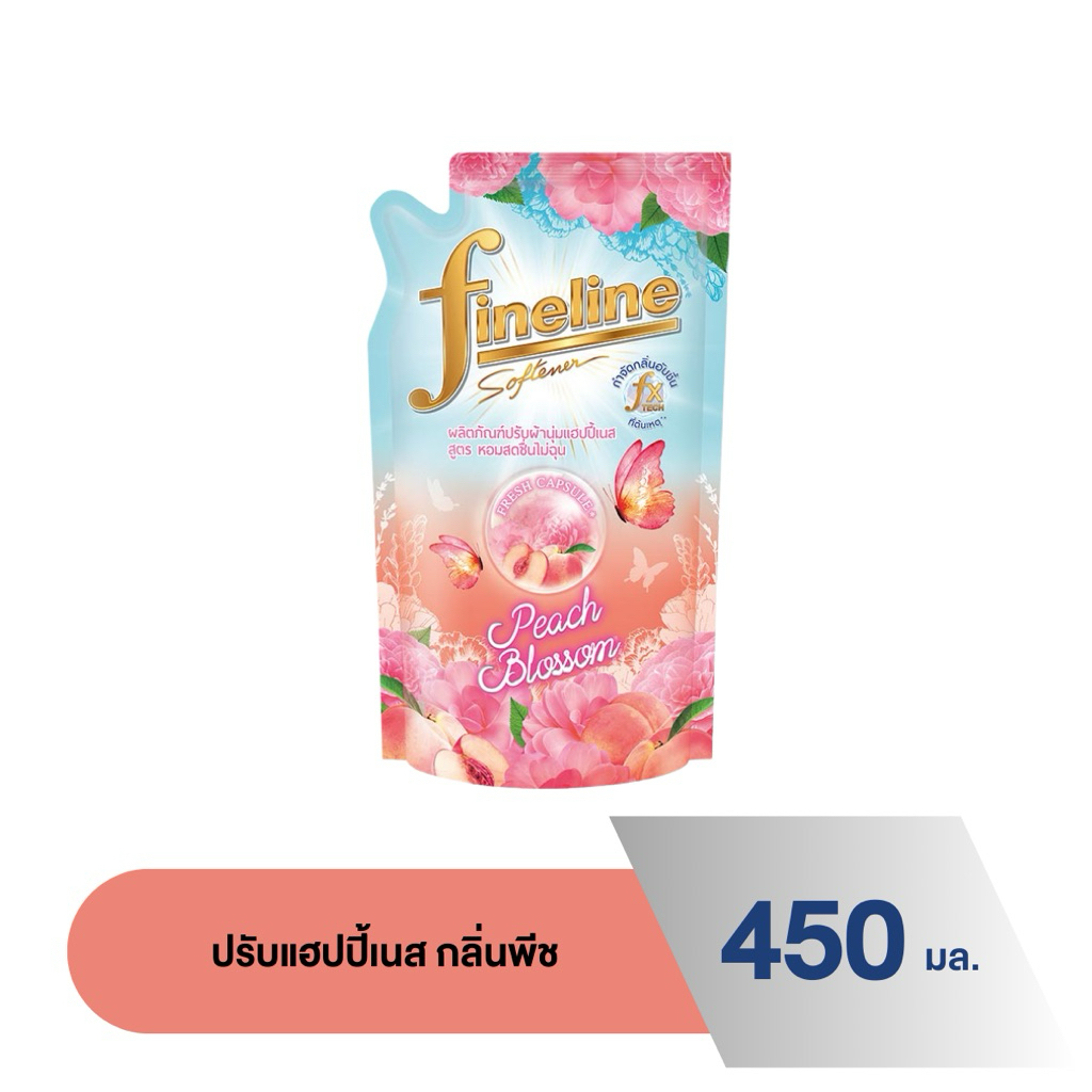 Fineline ไฟน์ไลน์ ผลิตภัณฑ์ปรับผ้านุ่ม แฮปปี้เนส สูตรหอมสดชื่นไม่ฉุน 450 มล.