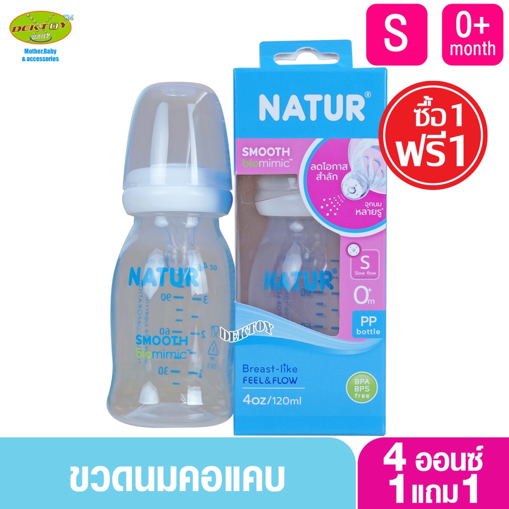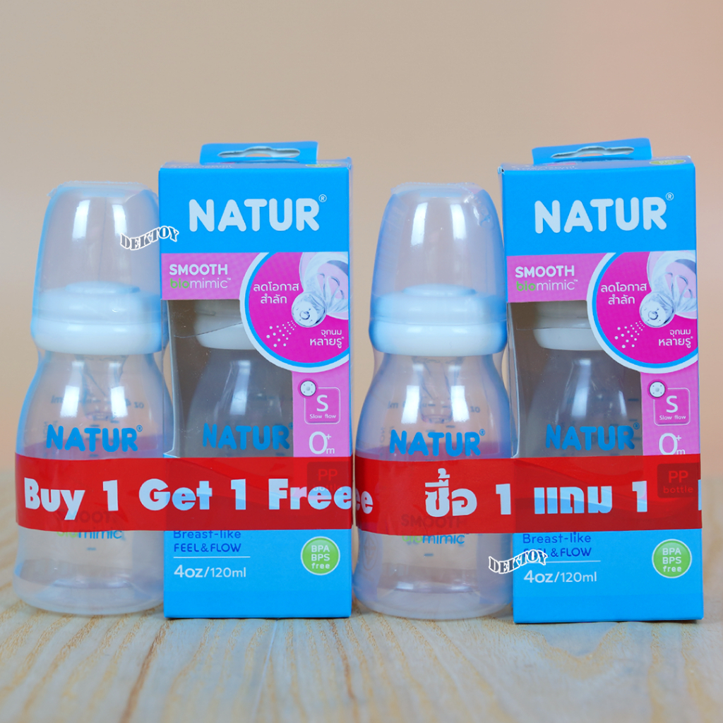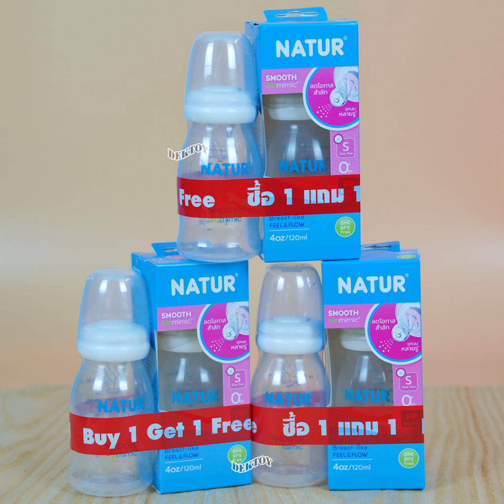 1 แถม 1 NATUR เนเจอร์ ขวดนมเนเจอร์สมูทไบโอมิมิค 4 ออนซ์