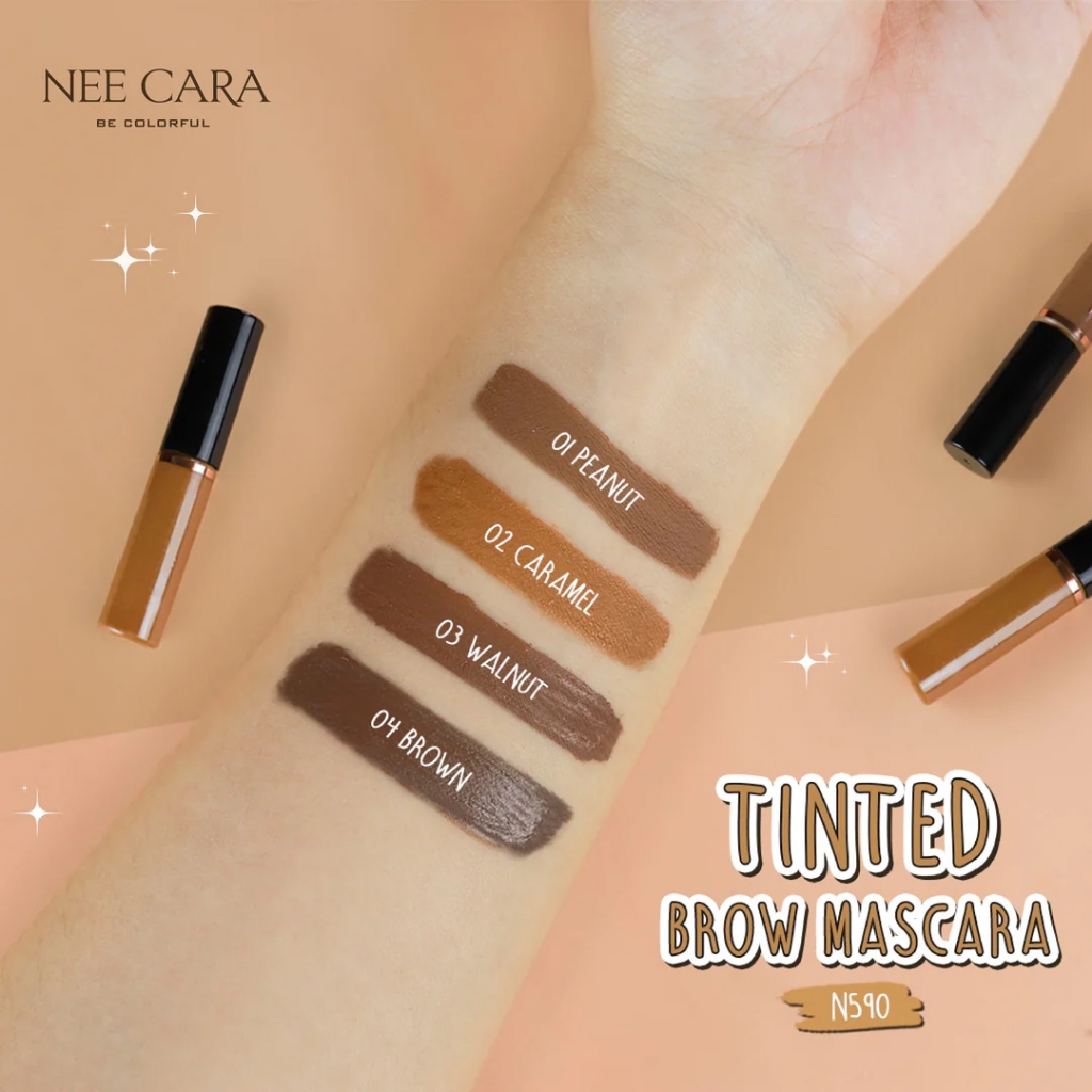 นีคาร่า ทินท์ มาสคาร่าคิ้ว ปัดขนคิ้ว กันน้ำ กันเหงื่อ Nee Cara Tinted Brow Mascara N590 4.5 ml.