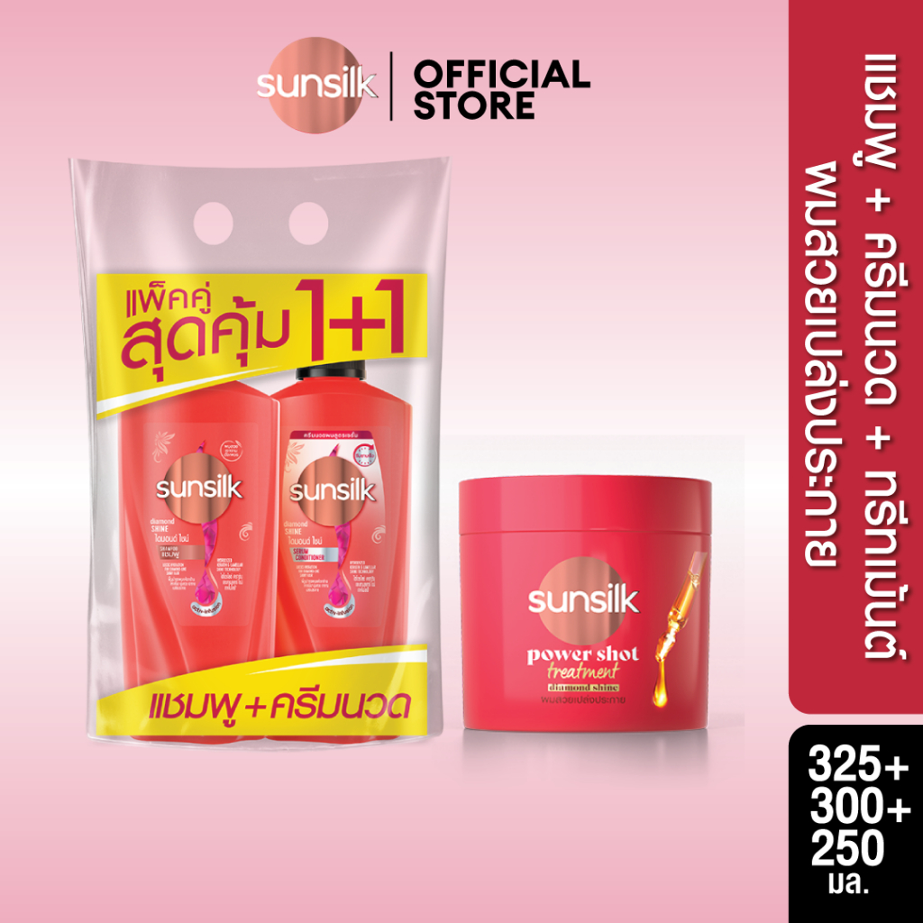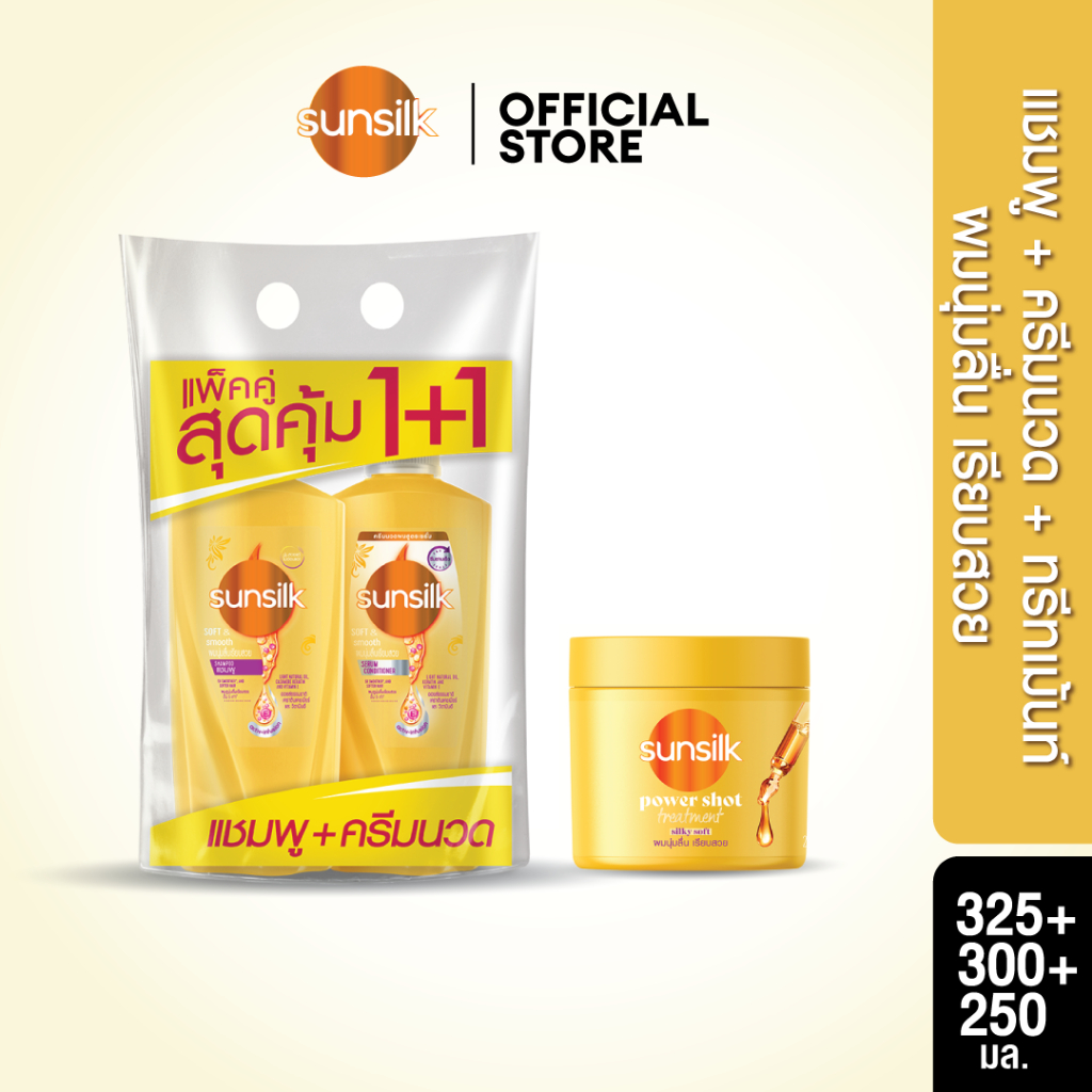 [เซ็ท3ชิ้น] ซันซิล แชมพู+คอนดิชันเนอร์+ทรีทเม้นท์ 325มล+300มล+250กรัม x1
