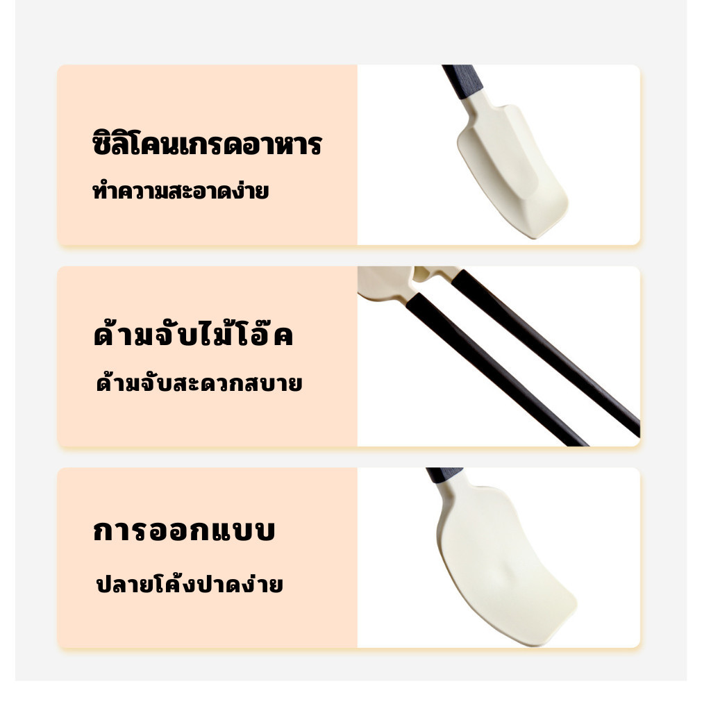 ไม้พาย ซิลิโคน อุปกรณ์ทำอาหาร เกรด พรีเมี่ยม ไม่มีกลิ่น เครื่องครัว ชุดไม้พายซิลิโคน ครัวเรือนพิเศษ ทนอุณหภูมิสูง Z0135