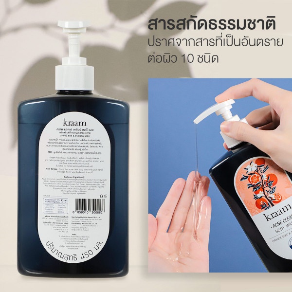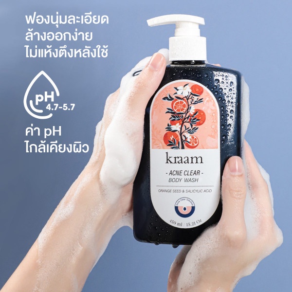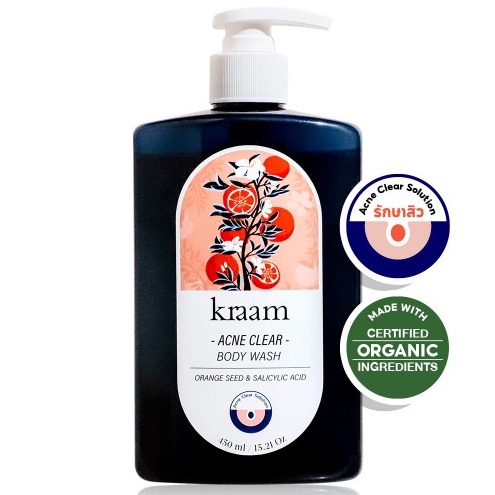 Kraam เจลอาบน้ำสูตรปกป้องผิวจากสิว Acne Clear Body Wash Orange Seed & Salicylic Acid (450 ml)