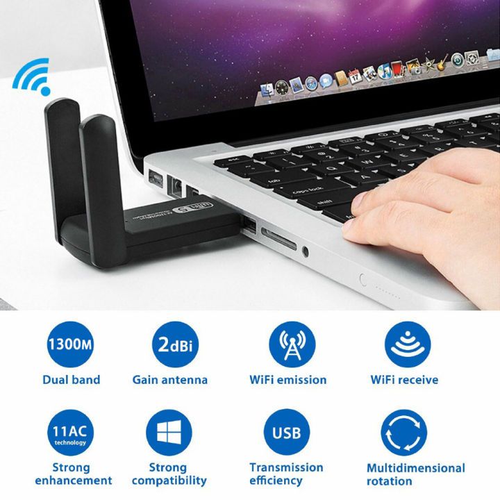 1300Mbps Wireless USB Wifi Adapter Dongle Dual Band 2.4G/5GHz 802.11AC
