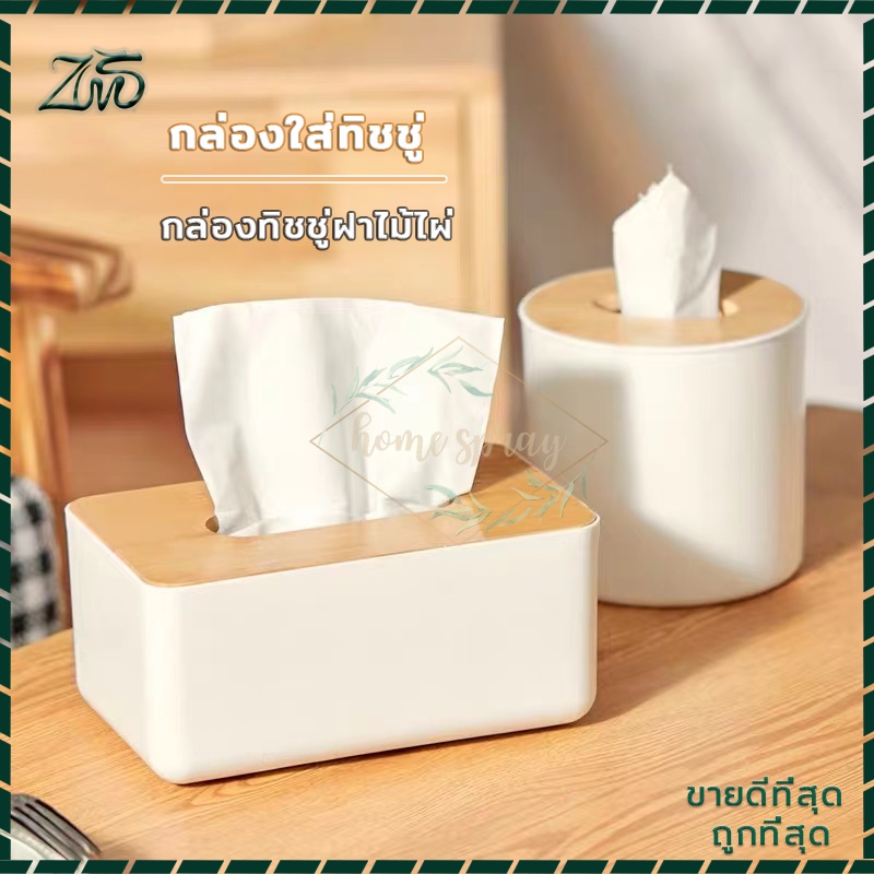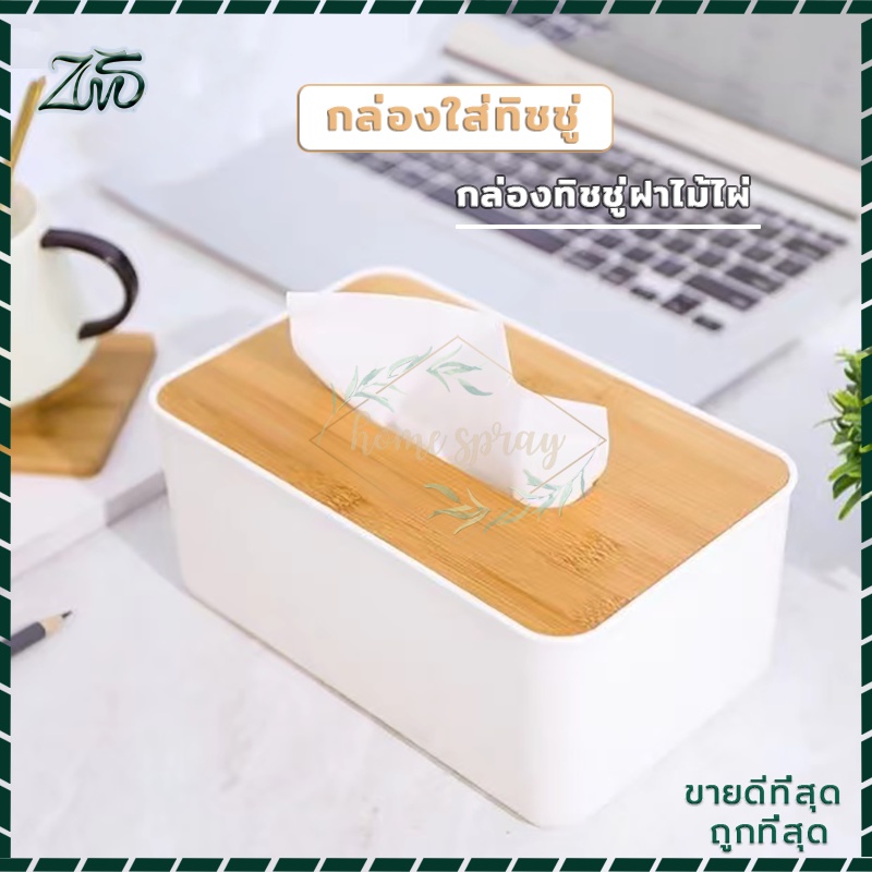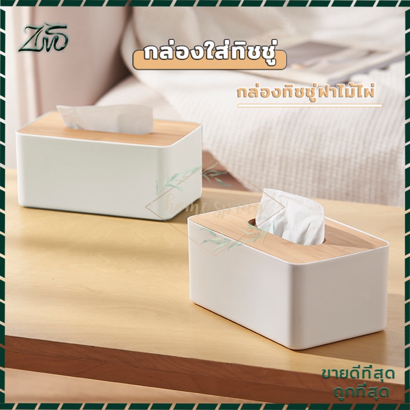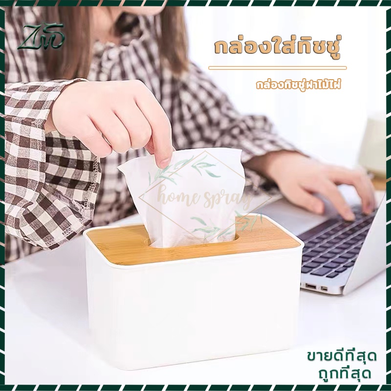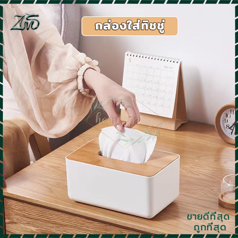 กล่องใส่ทิชชู่มินิมอล ฝาไม้ไผ่ ห้องนั่งเล่น