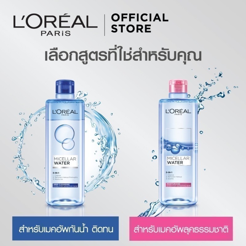 ลอรีอัล ปารีส L'Oréal Paris Micellar Water 3-In-1 Deep Cleansing 400ml คลีนซิ่งไมเซลล่า เช็ดเมคอัพกันน้ำ ติดทน