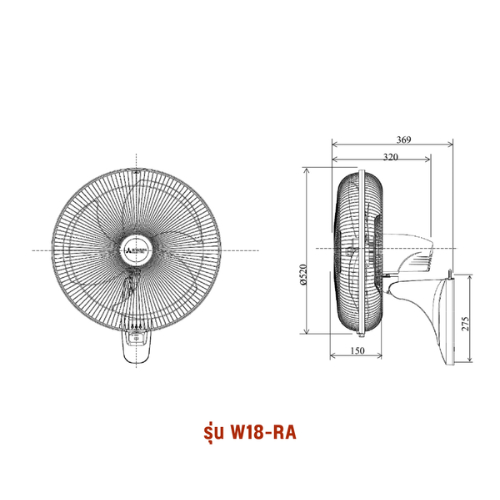พัดลมติดผนัง 18 นิ้ว พร้อมรีโมต MITSUBISHI ELECTRIC รุ่น W18-RA