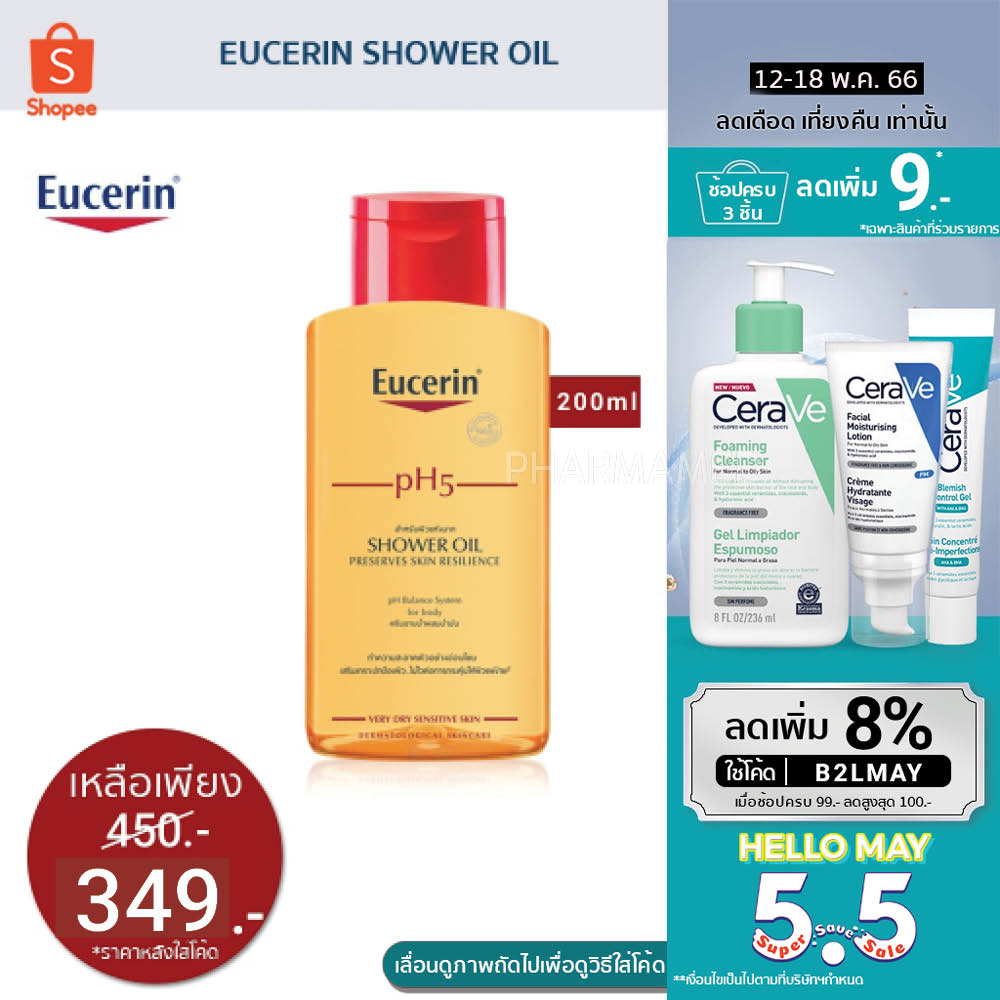 [กรอกโค้ด📌B2LMAYลด8%] Eucerin pH5 Shower Oil Sensitive Skin ยูเซอริน ครีมอาบน้ำผสมน้ำมัน ผิวแห้งมาก บอบบาง แพ้ง่าย