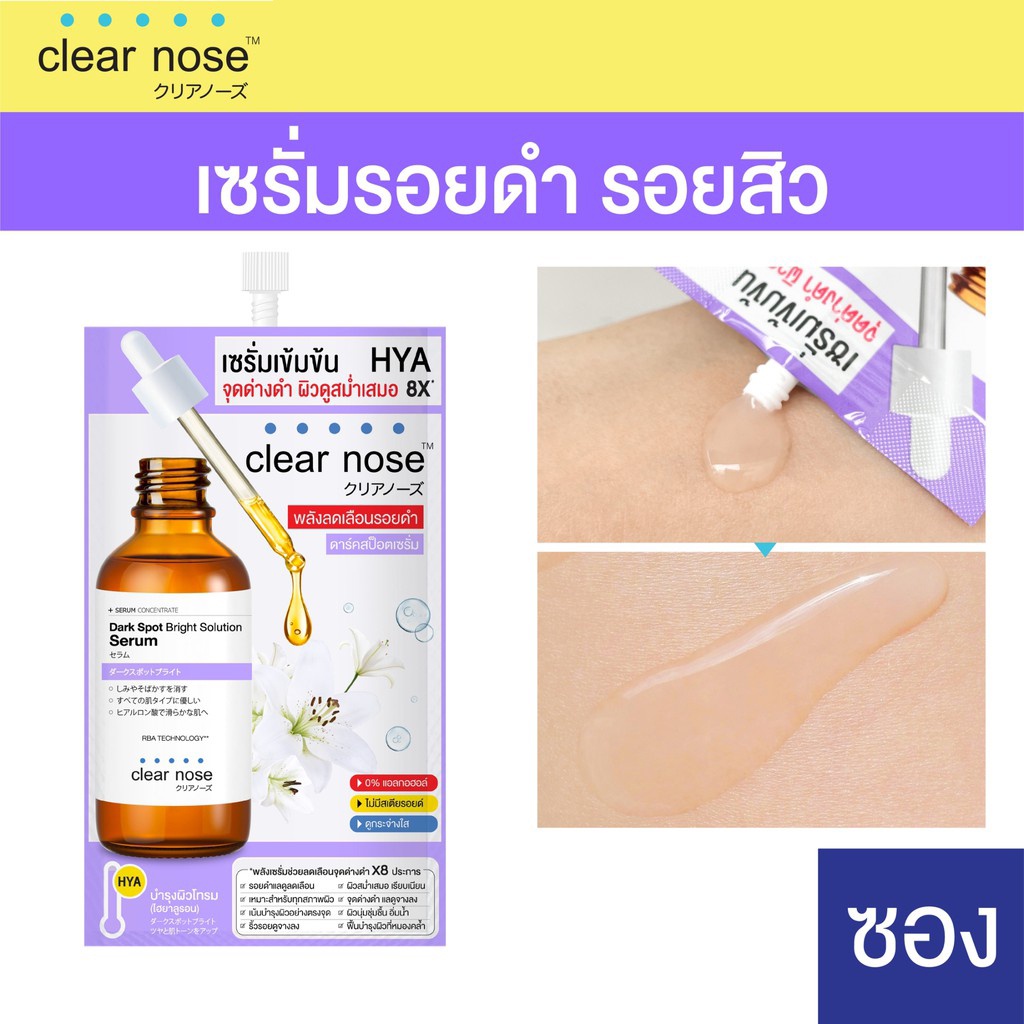 (กล่อง x6ซอง) เซรั่มไฮยา Clear nose Dark Spot Bright Solution Serum เคลียร์โนส ดาร์ค สป็อต ไบรท์ โซลูชั่น เซรั่ม