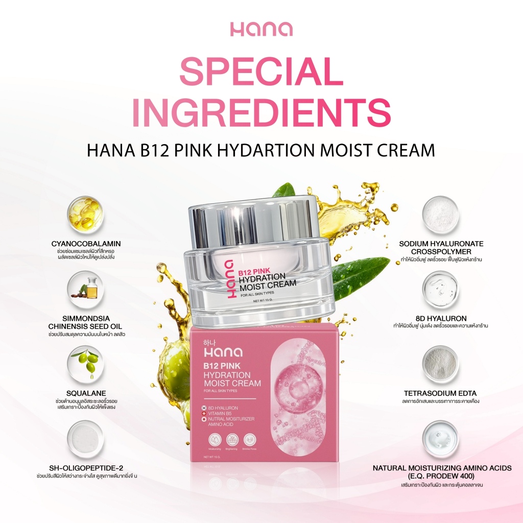 A19 HANA B12 PINK HYDRATION MOIST CREAM ฮานา บีสิบสอง มอยซ์เจอร์ไรเซอร์ ครีม