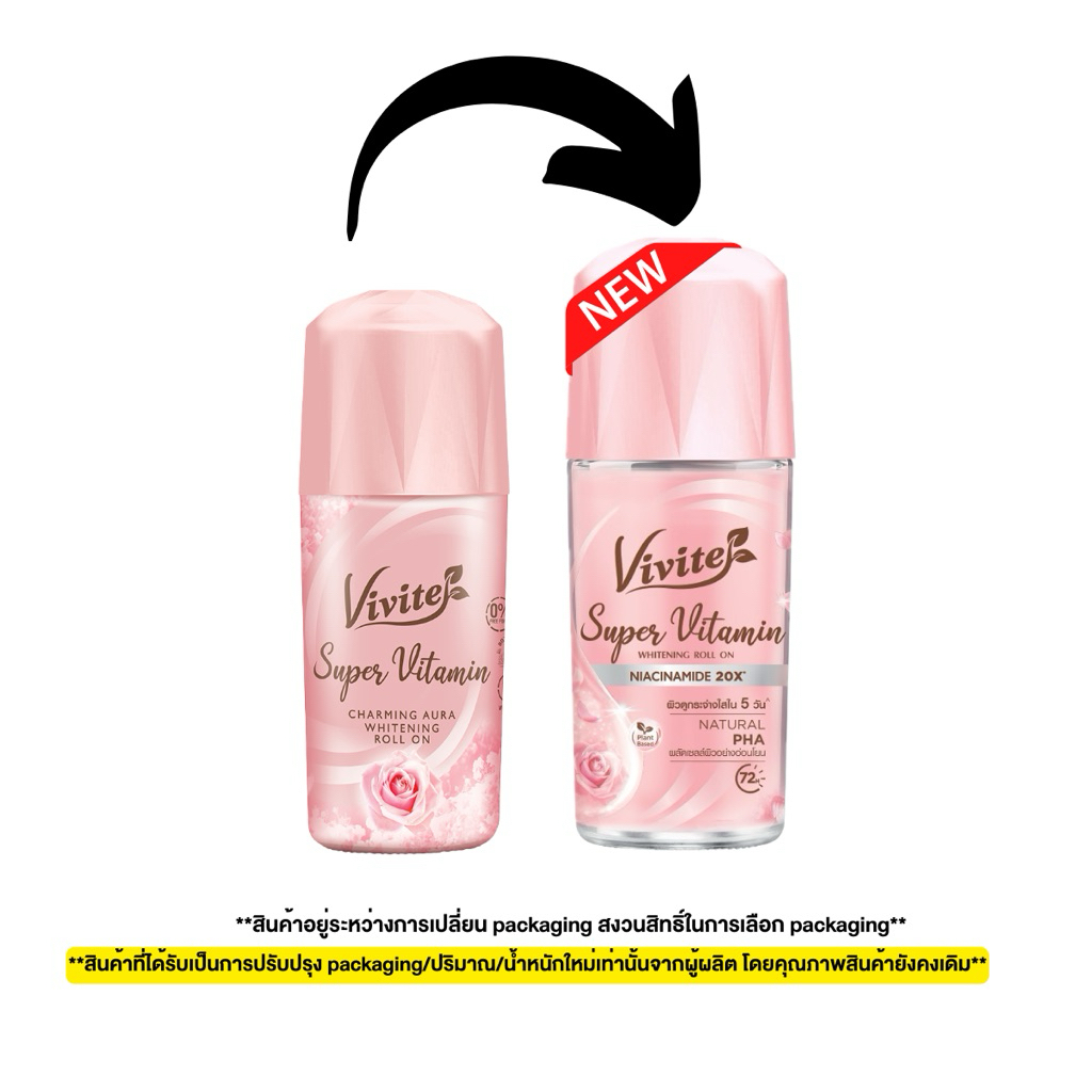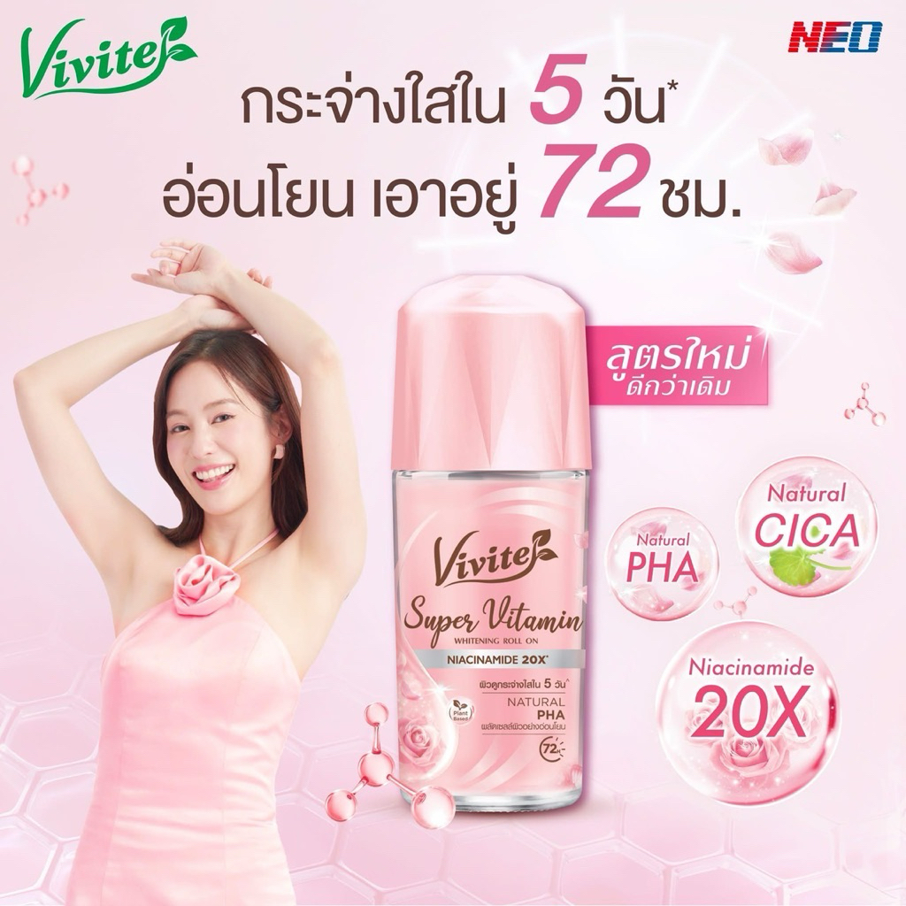 [ขวดใหญ่ x1] Vivite วีไวต์ โรลออนไวท์เทนนิ่ง ระงับกลิ่นกาย ขนาด 40-45 ml. [ราคาขวดเดี่ยว]
