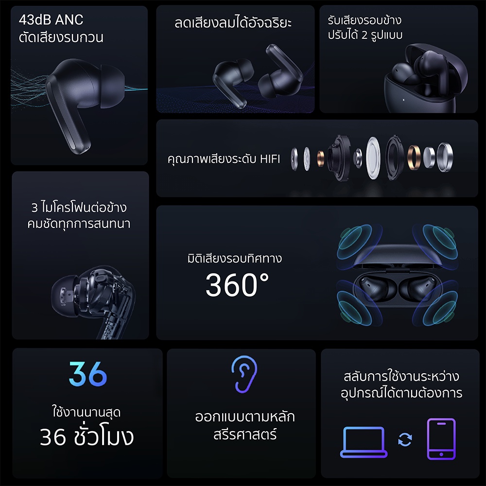 (รับประกันศูนย์ไทย) Xiaomi Redmi Buds 4 Pro (GB.V) หูฟังไร้สาย ตัดเสียงรบกวน ANC Bluetooth 5.3 Game Mode -1Y