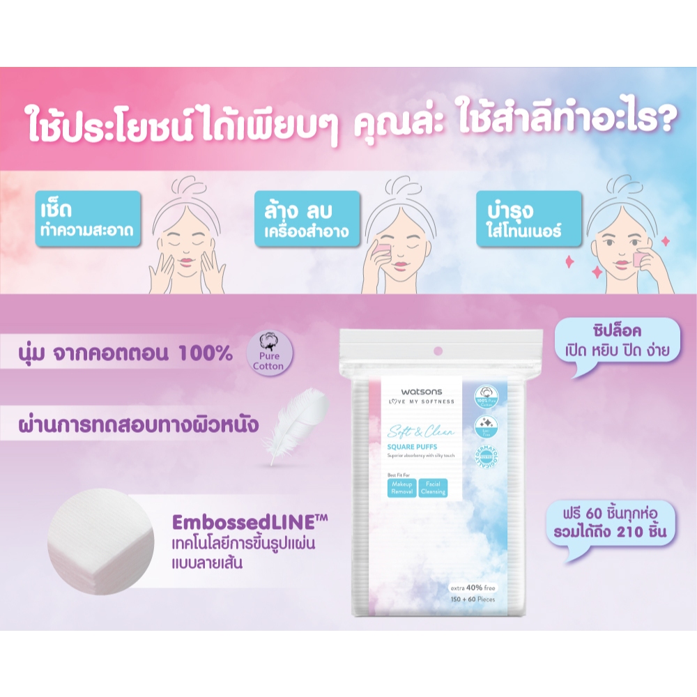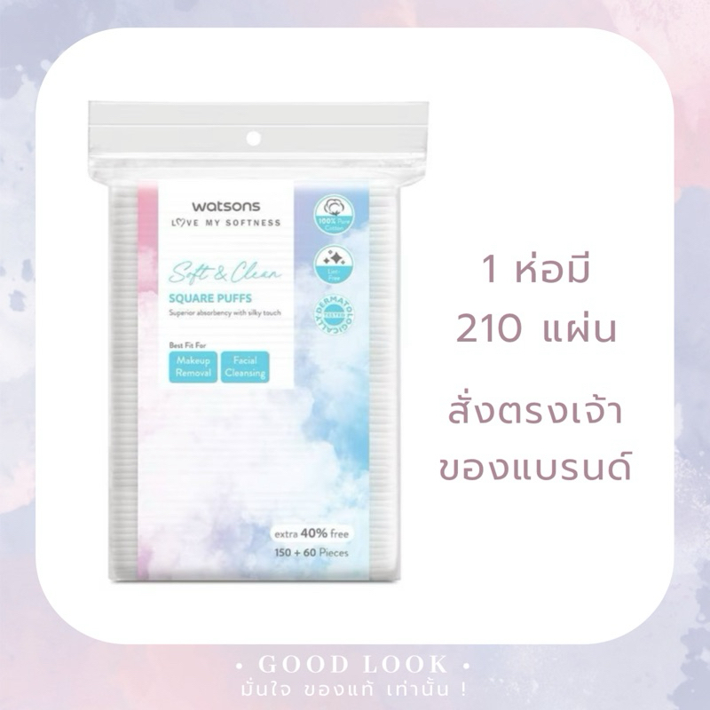 WATSONS วัตสัน สำลีแผ่นสี่เหลี่ยม 210 แผ่น