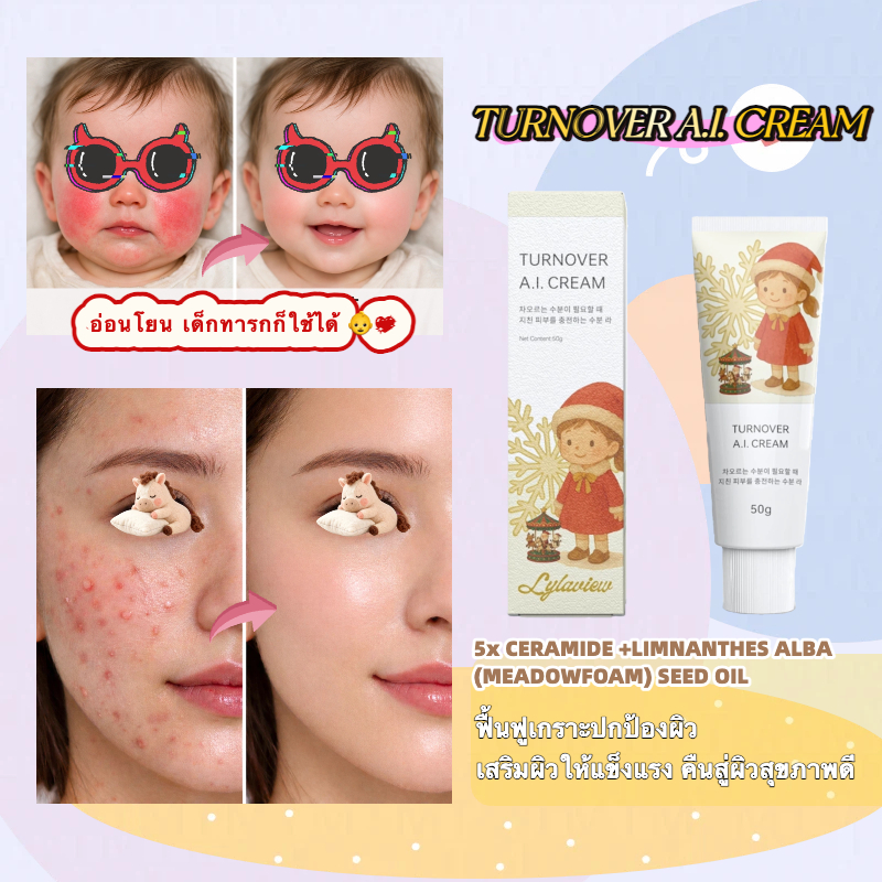 【ผิวแพ้ง่าย】ครีมลดสิวผด สิวอักเสบ ลดรอยแดง อ่อนโยนต่อผิวแพ้ง่าย LYLAVIEW TURNOVER A.I. CREAM 50g
