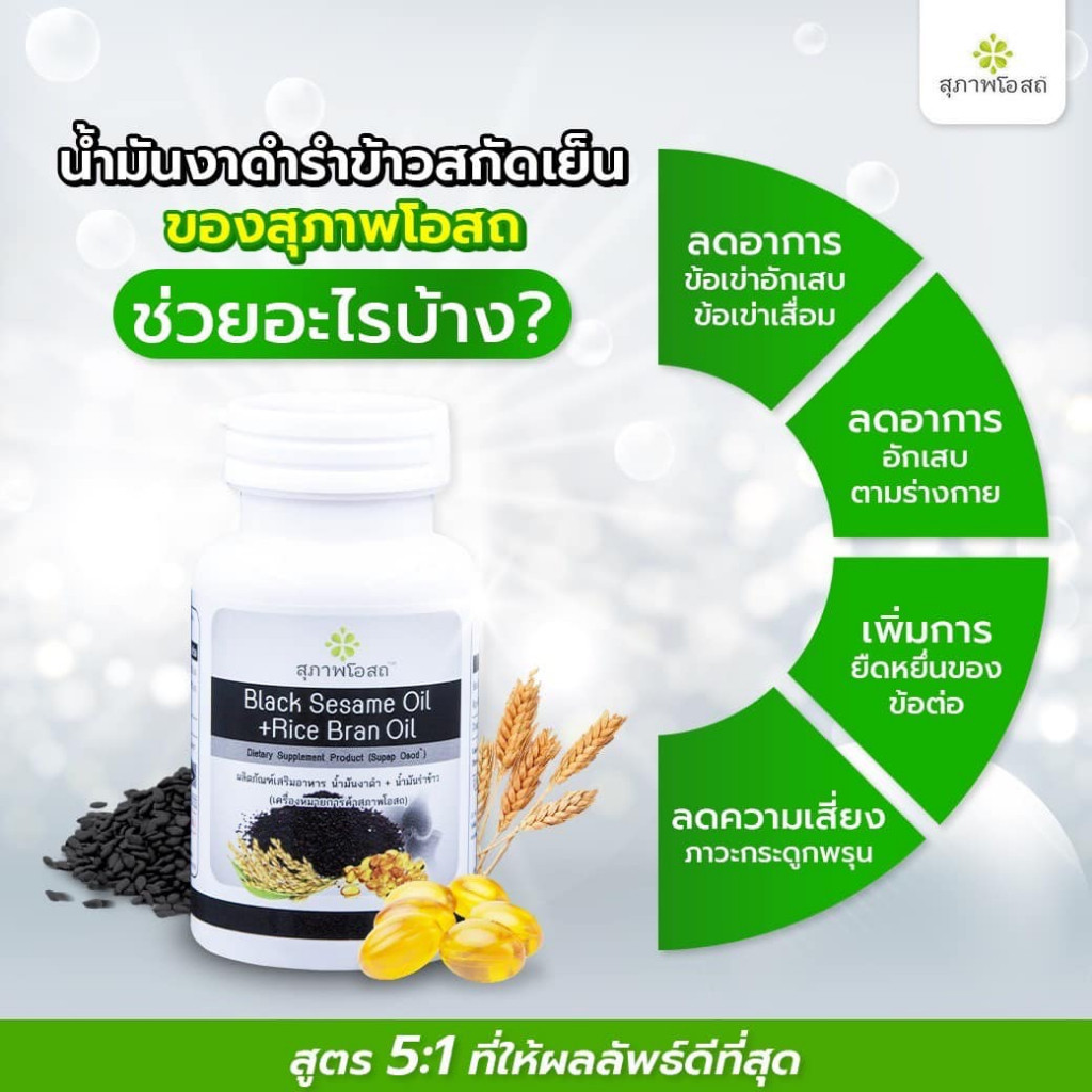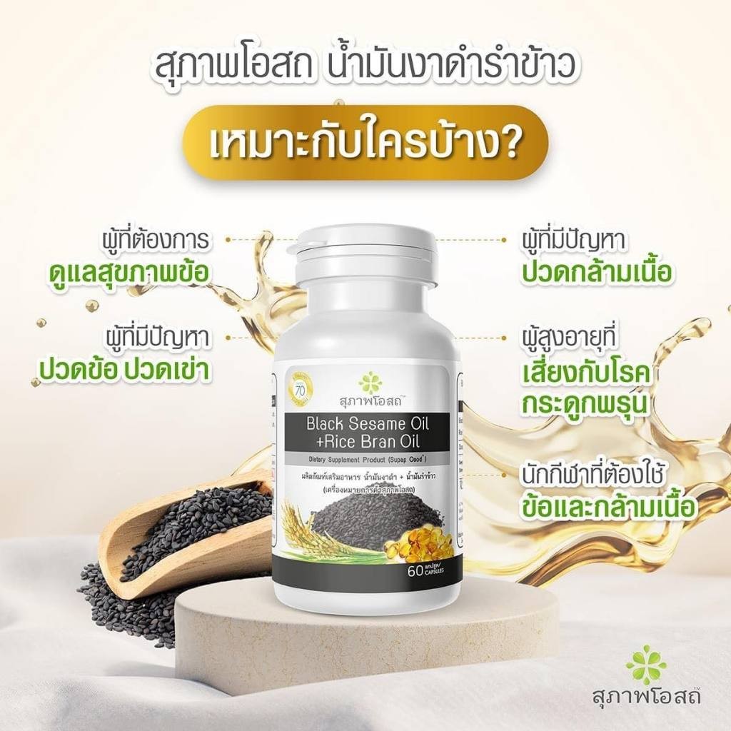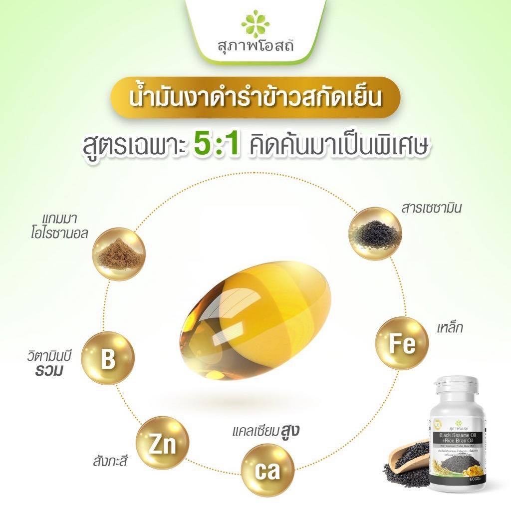 Black Sesame Oil + Rice Bran Oil สุภาพโอสถ น้ำมันงาดำ น้ำมันรำข้าว [30/60 แคปซูล] [1 กระปุก] ดูแลสุขภาพ ลดการปวดเข่า