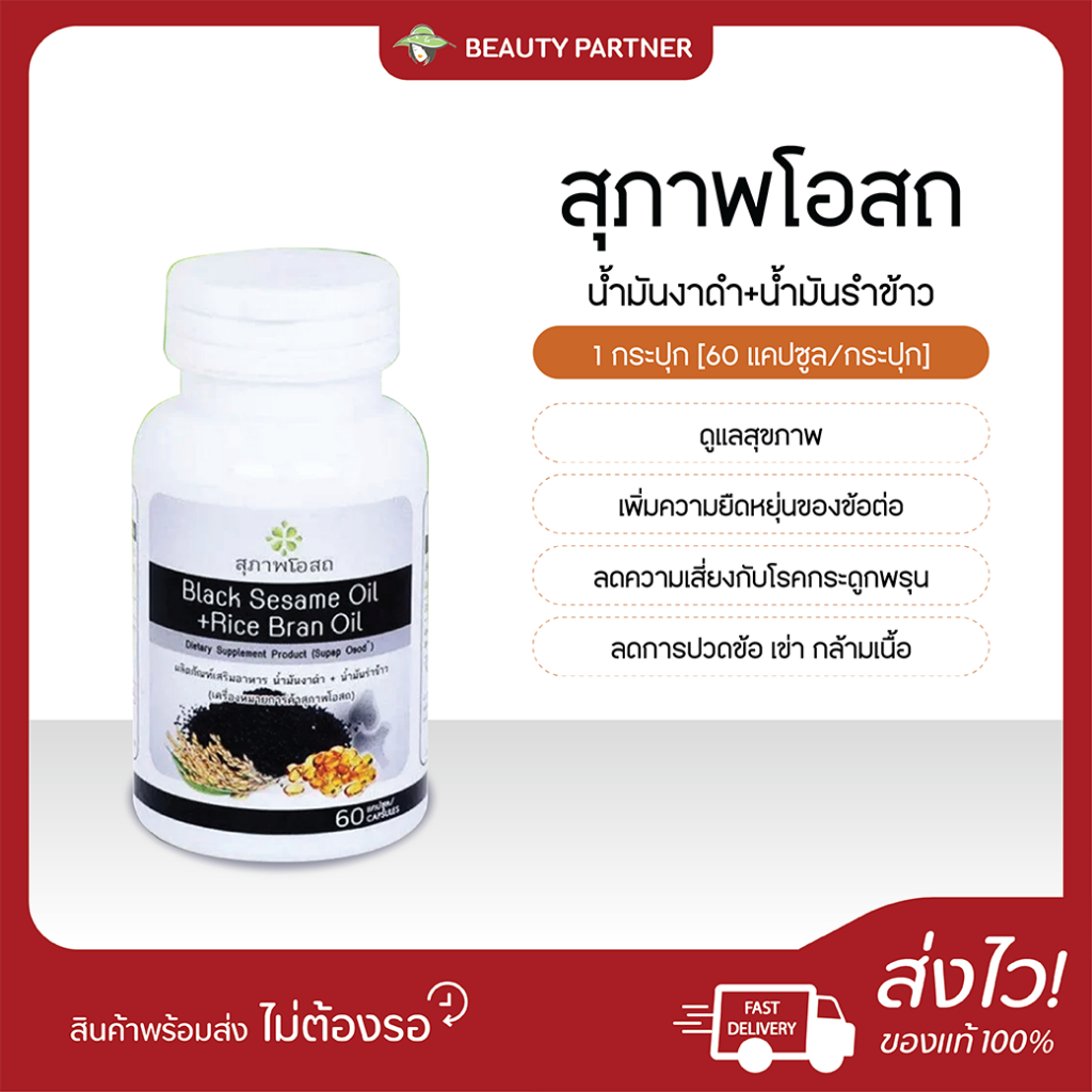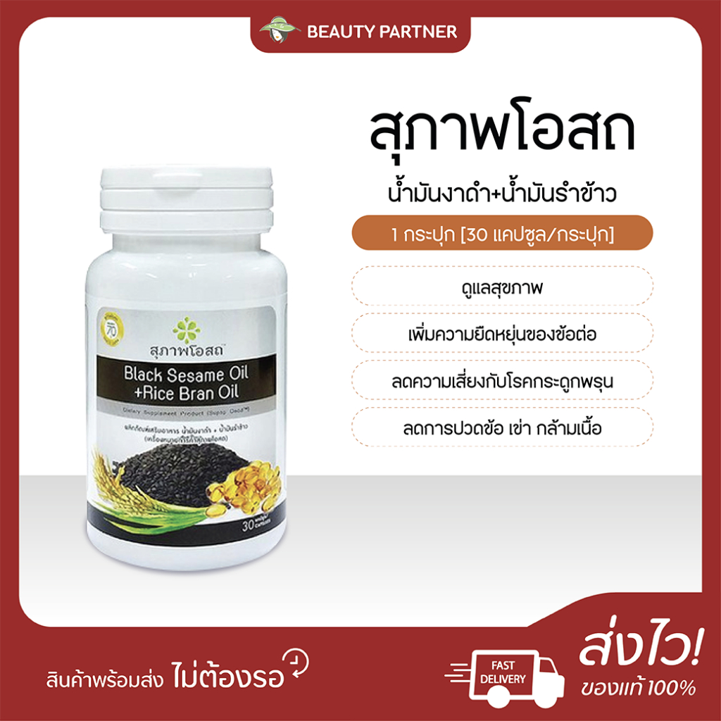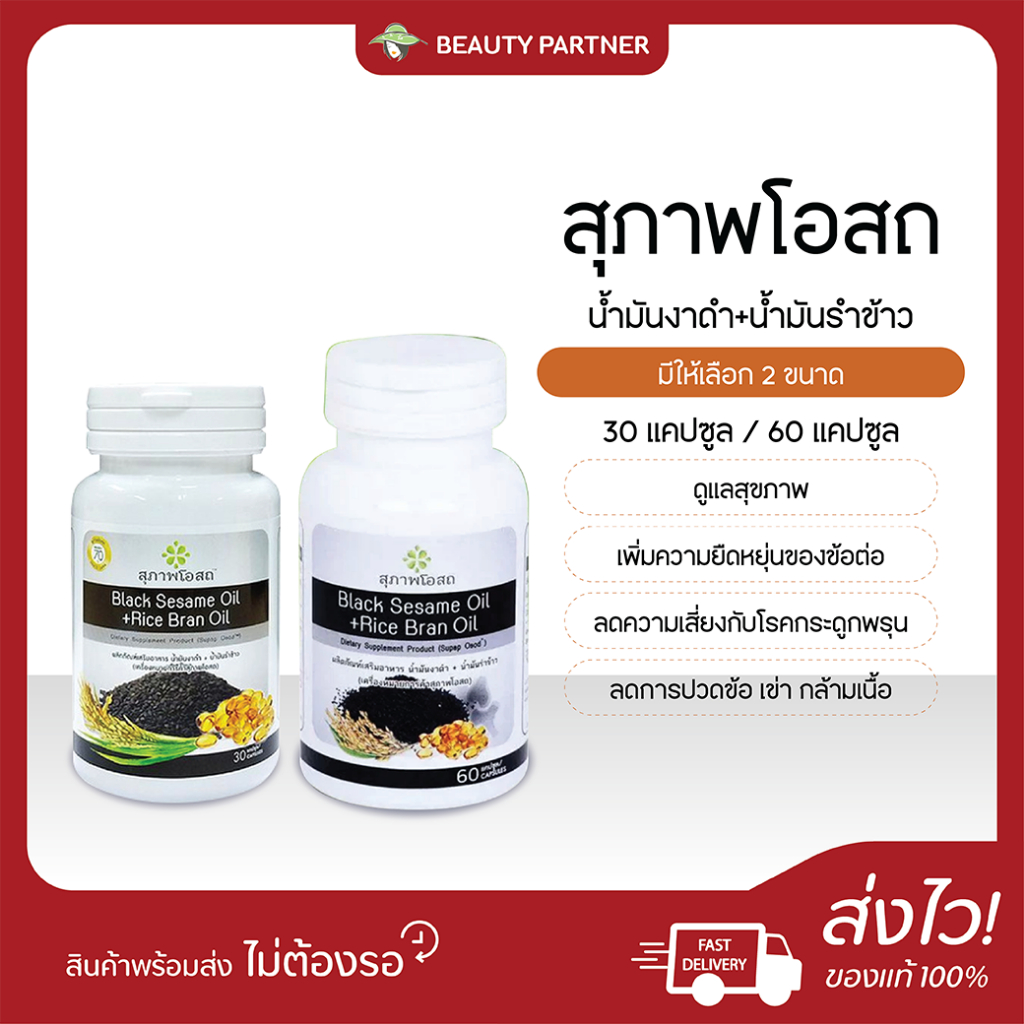 Black Sesame Oil + Rice Bran Oil สุภาพโอสถ น้ำมันงาดำ น้ำมันรำข้าว [30/60 แคปซูล] [1 กระปุก] ดูแลสุขภาพ ลดการปวดเข่า