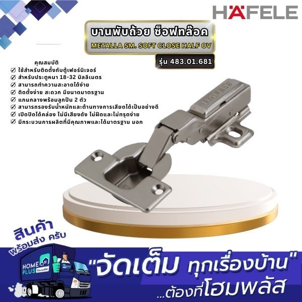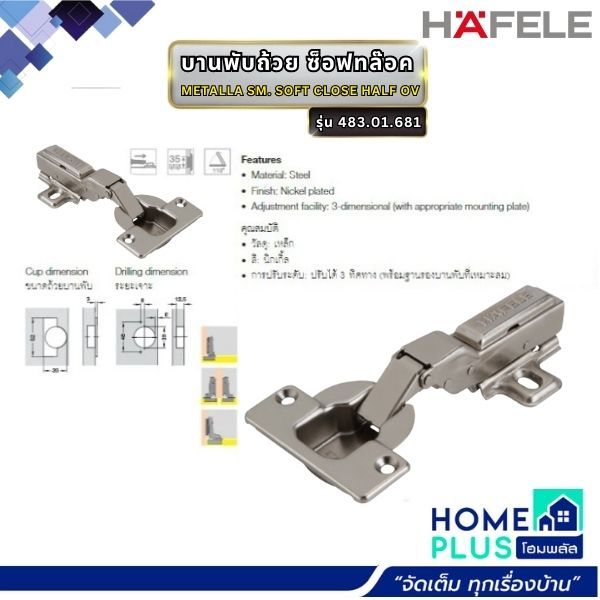 HAFELE บานพับถ้วย ซ็อฟทล๊อค METALLA SM. SOFT CLOSE HALF OV #483.01.681