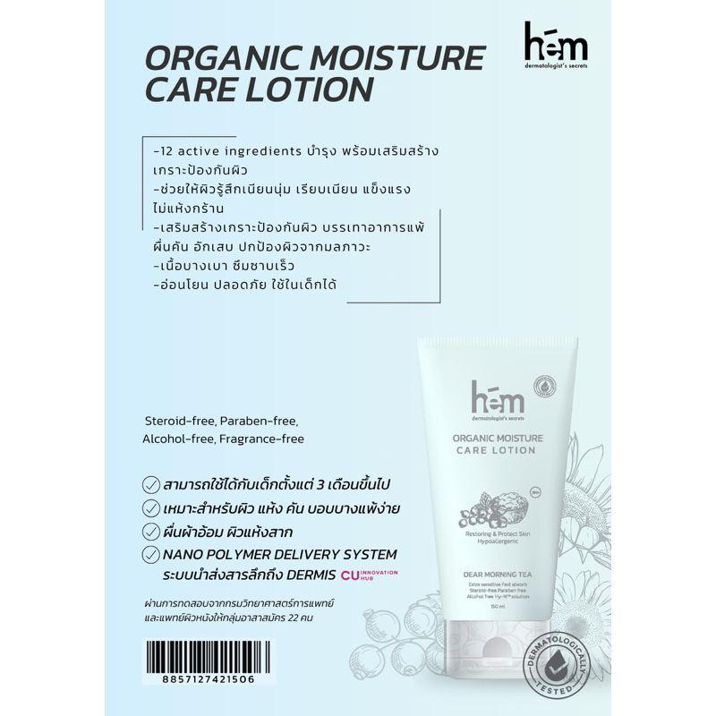 H.E.M Organic Moisture Care Lotion เอชอีเอ็ม โลชั่น ทาผิวกาย สูตรอ่อนโยน สำหรับผิวบอบบางแพ้ง่าย 150 มล. hem