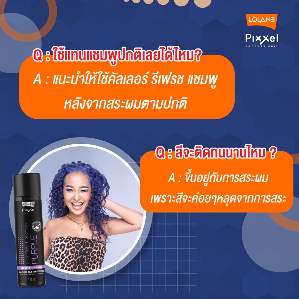 Lolane โลแลน พิกเซล คัลเลอร์ รีเฟรช 100 มล. แชมพู รักษาสีผม ผมเทาหม่น สีม่วง เติมประกายสีผม ลดการทำเคมีซ้ำ