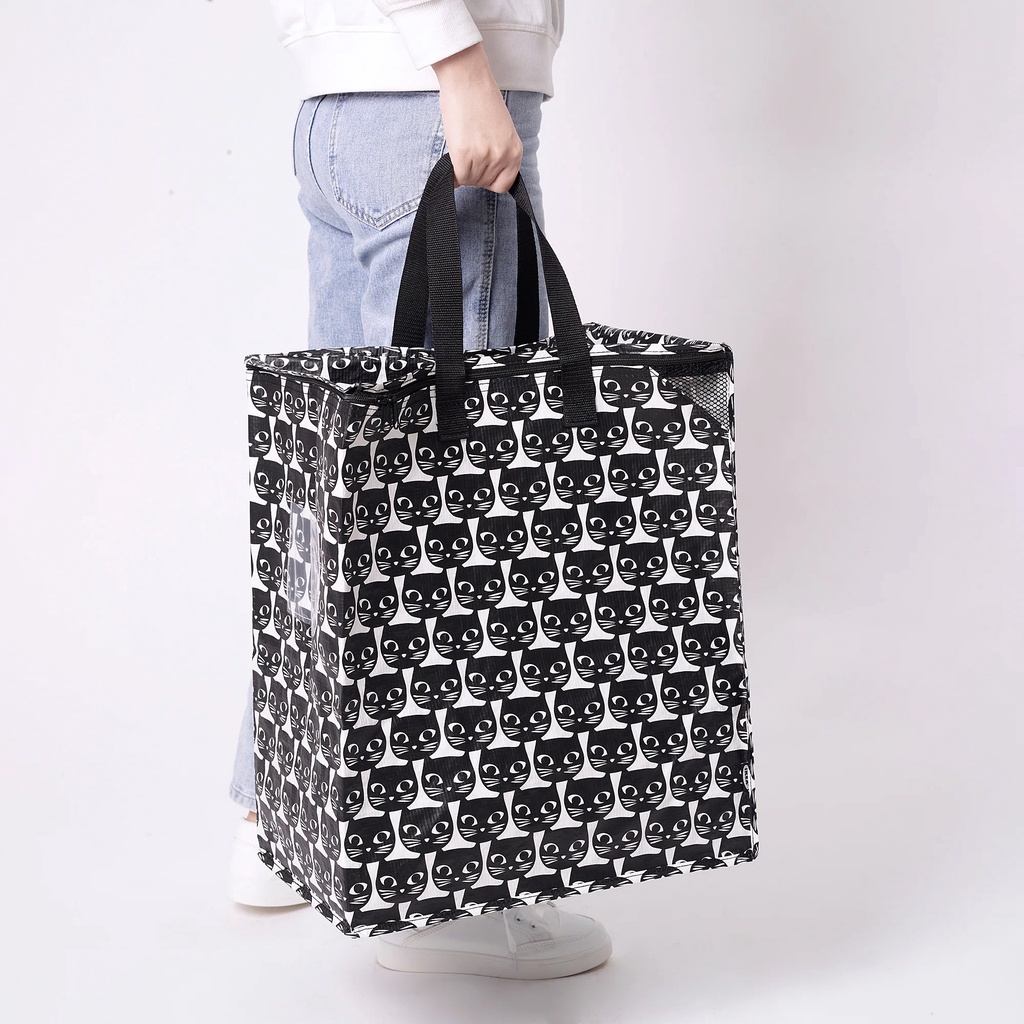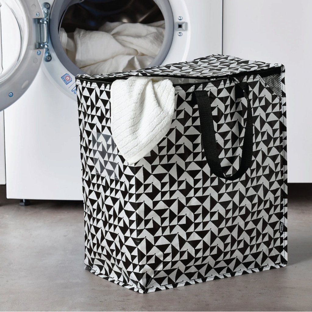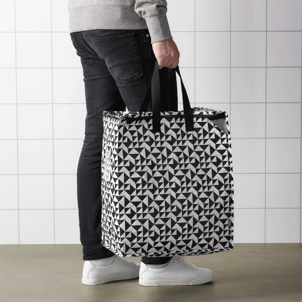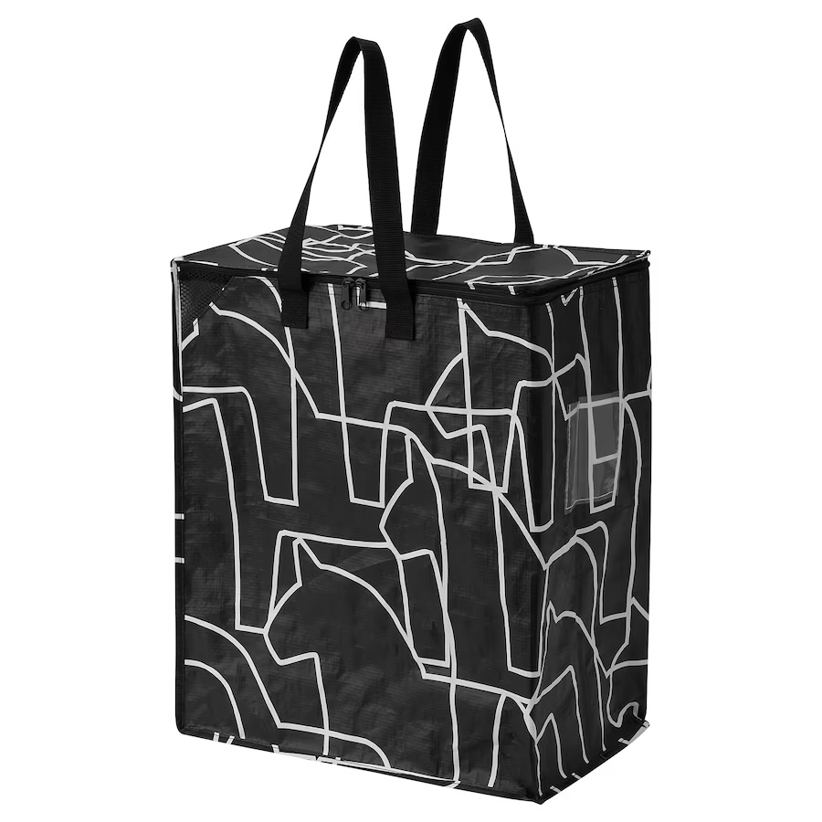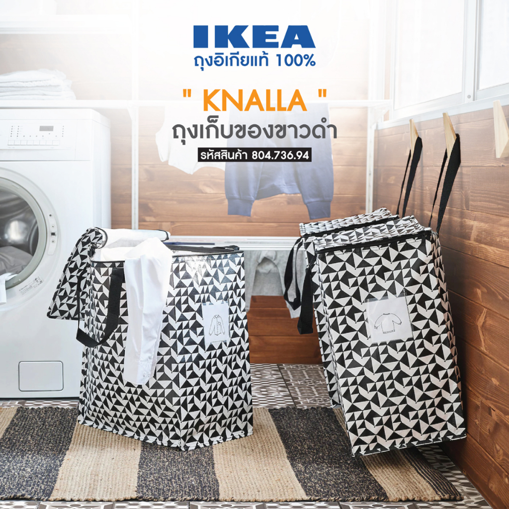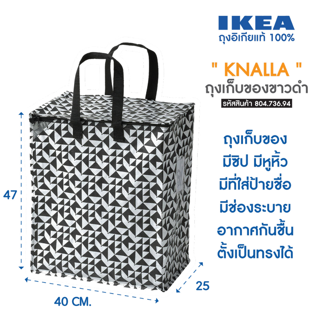 ถุงอิเกีย รุ่น KNALLA ถุงอเนกประสงค์ เก็บของ เก็บผ้า ทรงกล่อง ใบใหญ่ สีขาวดำ IKEA Storage Bag