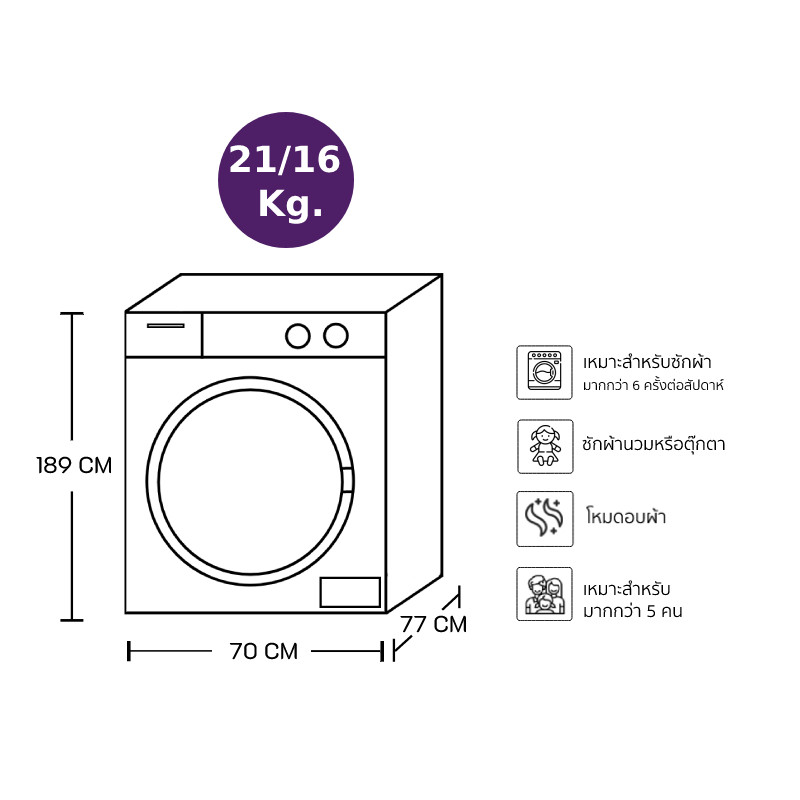 [จัดส่งพร้อมติดตั้ง] LG Wash Tower เครื่องซักผ้า/อบผ้า ฝาหน้า (21/16 kg) รุ่น WT2116SHEG.ABGPETH