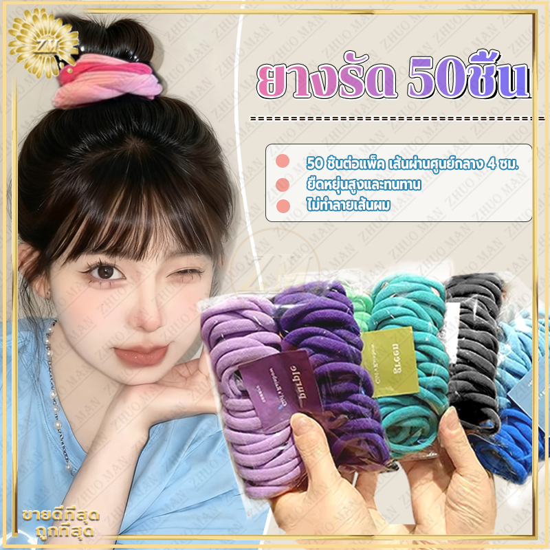 ยางรัด ยางรัดผมผ้า ยางมัดผมผ้ากำมะหยี่ 50ชิ้น หนังยางมัดผม ม่แตกหักหรือเสียรูปง่าย ฟีลเกาหลี ถูกมาก