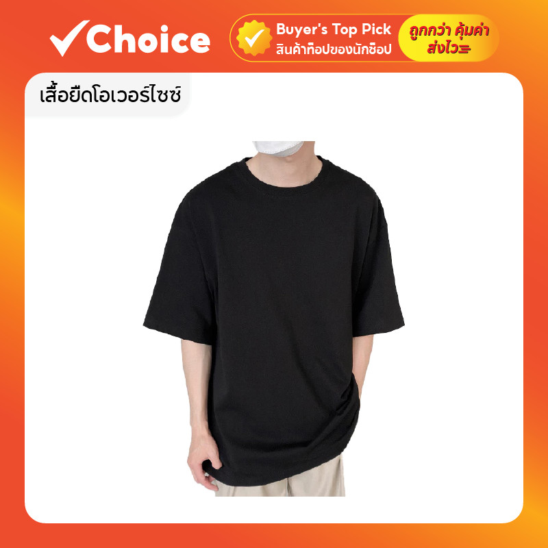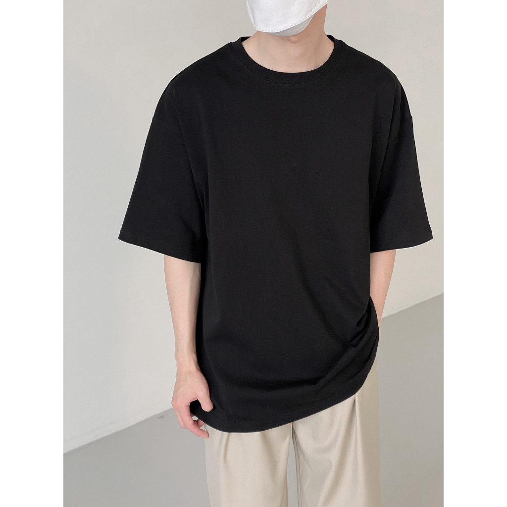 เสื้อยืดโอเวอร์ไซซ์สไตล์เกาหลีสีดำ สำหรับผู้ชาย รอบอก 44 นิ้ว