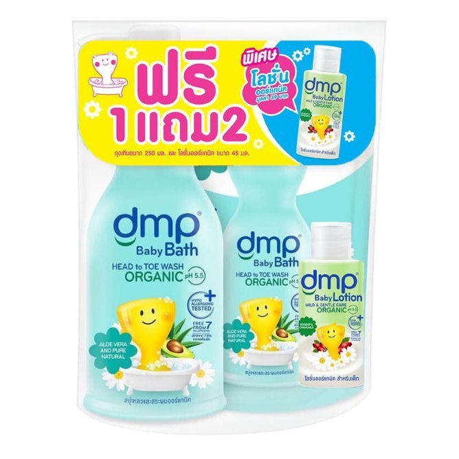 DMP ดีเอ็มพี คิดส์ 3in1 สบู่เหลวอาบน้ำเด็ก อาบน้ำและสระผม สำหรับเด็ก ออแกนิค p.H 5.5 แชมพูเด็ก ครีมอาบน้ำเด็ก