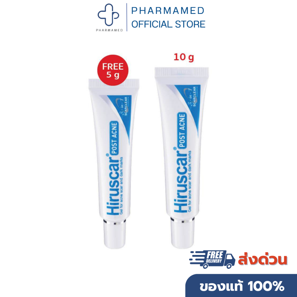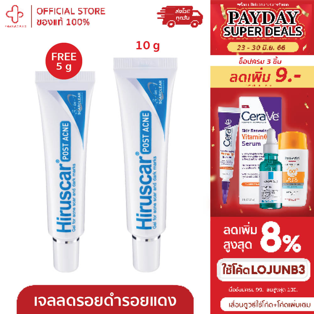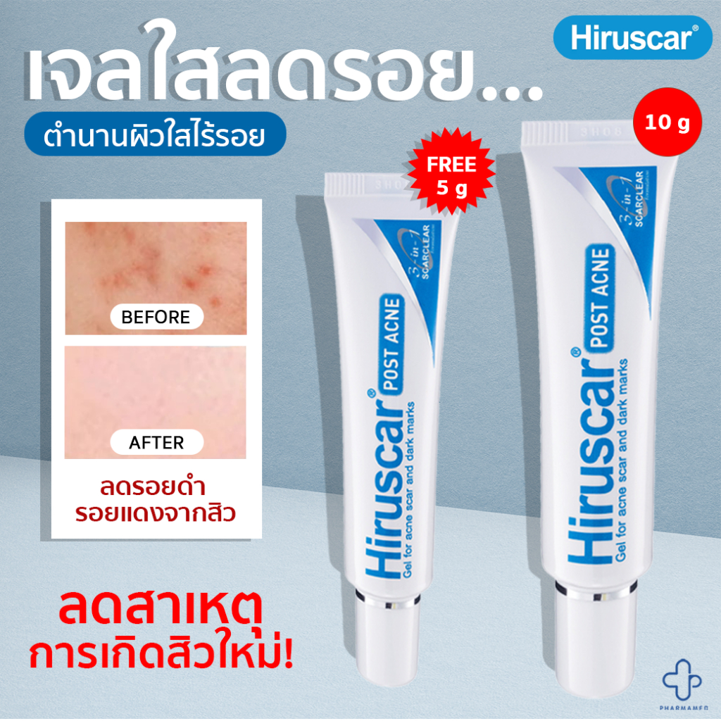 (1แถม1) 10g แถม5g HIRUSCAR POST ACNE ฮีรูสการ์ โพสต์แอคเน่ เจลใส ใช้แต้มแผลเป็นจากสิวเช่น รอยสิว หลุม รอยดำ รอยอักเสบแดง