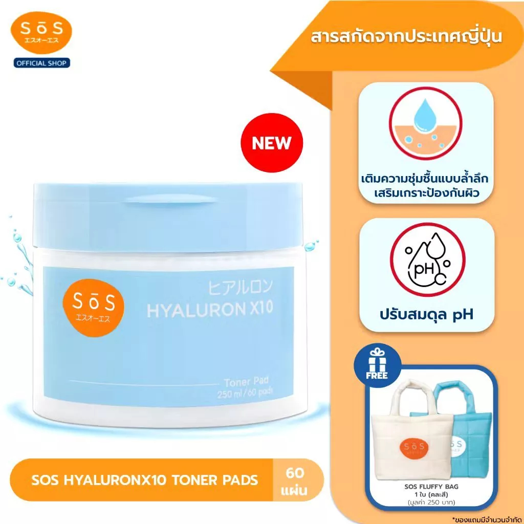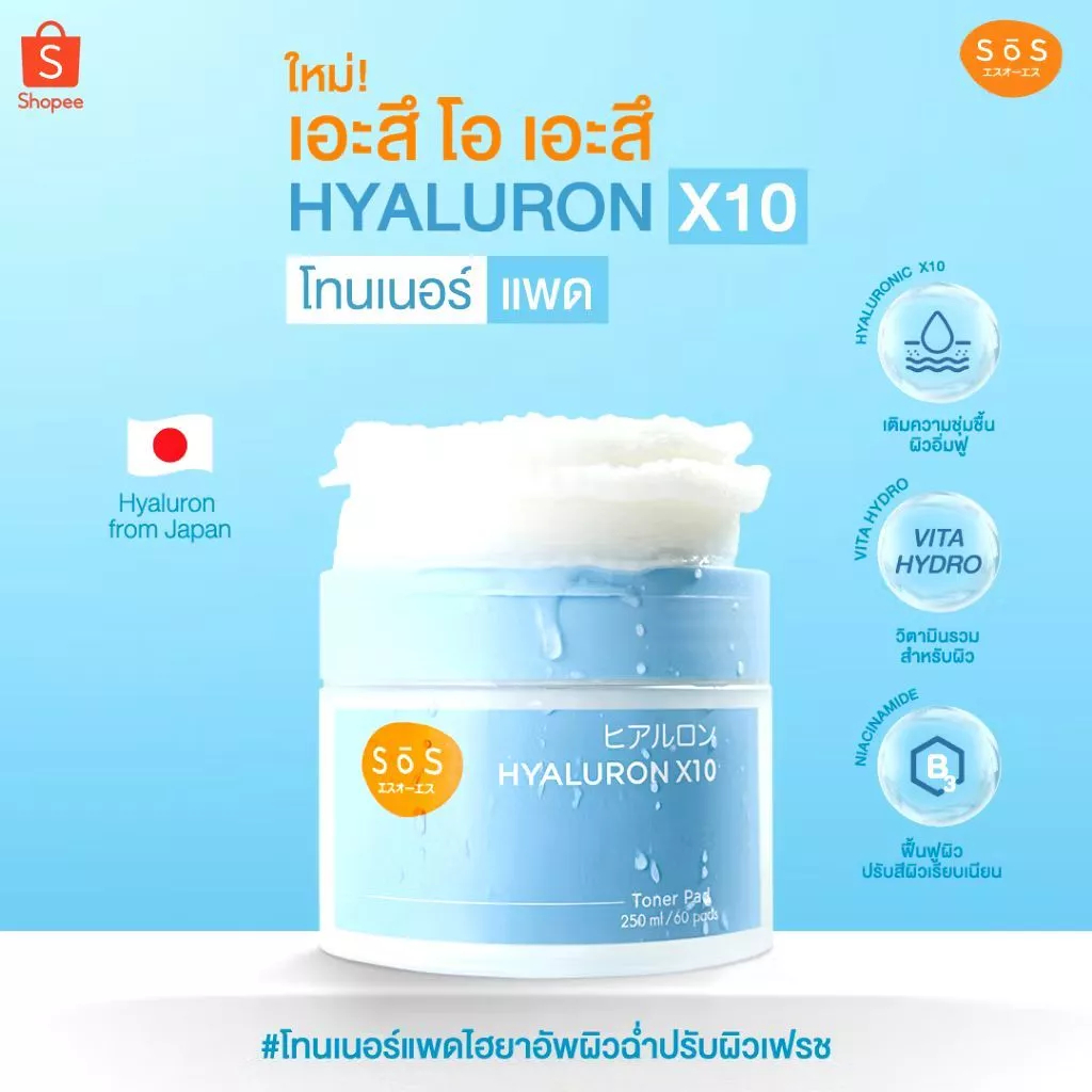 SOS Hyaluronx10 Toner Pads เอะสึ โอ เอะสึ ไฮยาลูรอน เอ็กซ์ 10 โทนเนอร์ แพด (10SO00102)