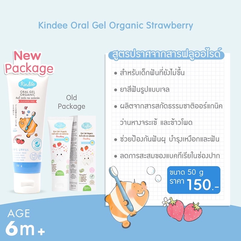 kindee คินดี้ ออรัลเจล สตอว์เบอร์รี่ 6+ ออร์แกนิค 50 กรัม