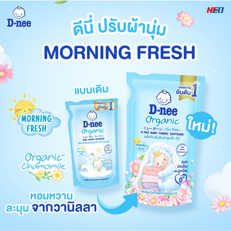 D-nee New Born ผลิตภัณฑ์ปรับผ้านุ่มเด็ก Organic กลิ่น MorningFresh (530 มล.)