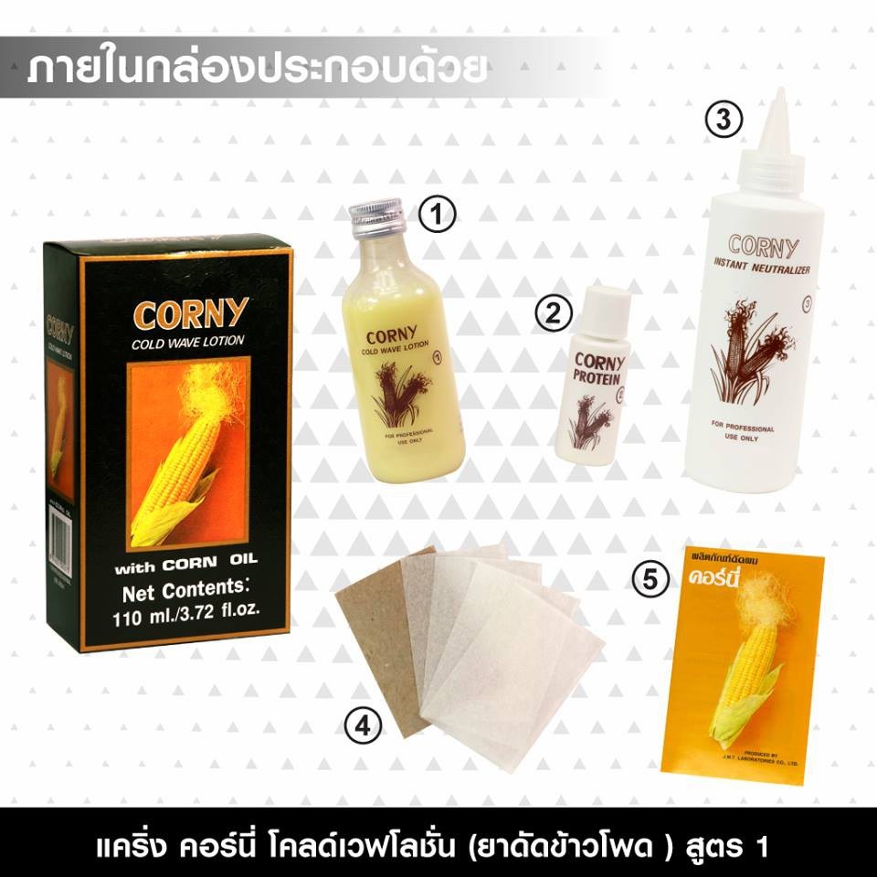 Corny Cold Wave Lotion With Corn Oil น้ำยาดัดผมข้าวโพด คอร์นี่ ลอนแน่น หยิกนาน มี 2 สูตร 110ml.