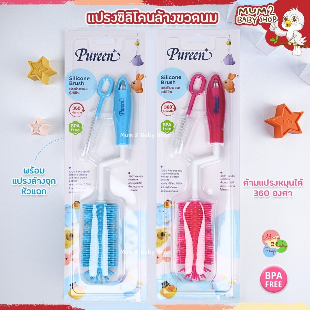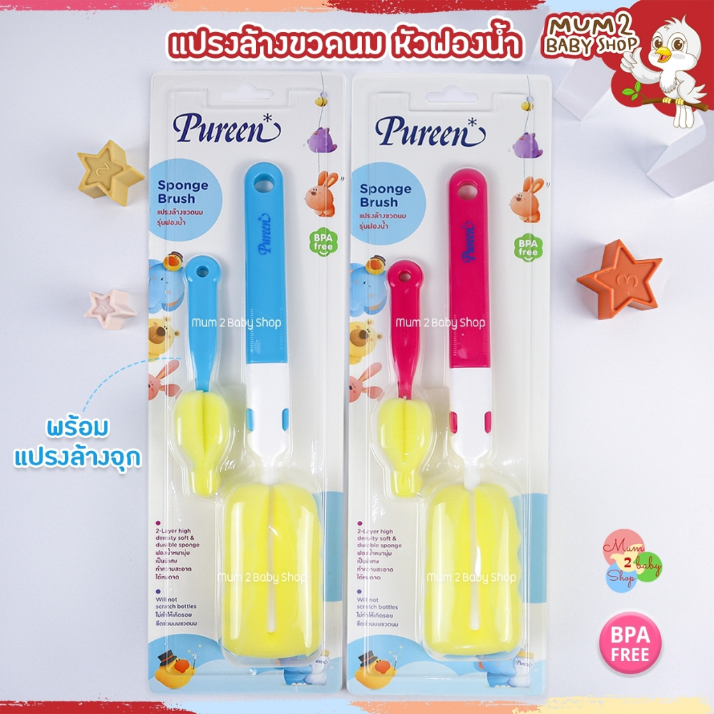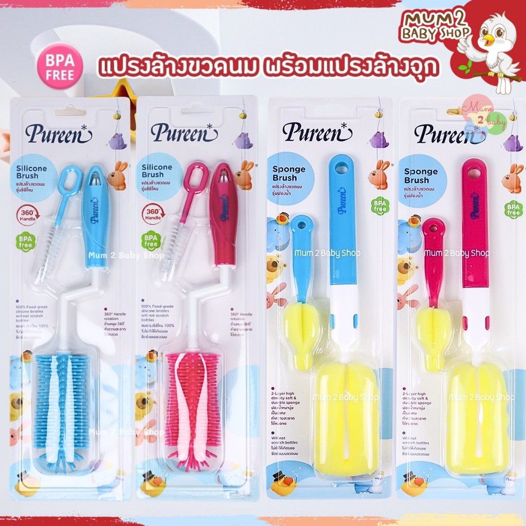 Pureen เพียวรีน แปรงล้างขวดนมหัวซิลิโคน หัวฟองน้ำ อ่านรายละเอียดก่อนสั่ง