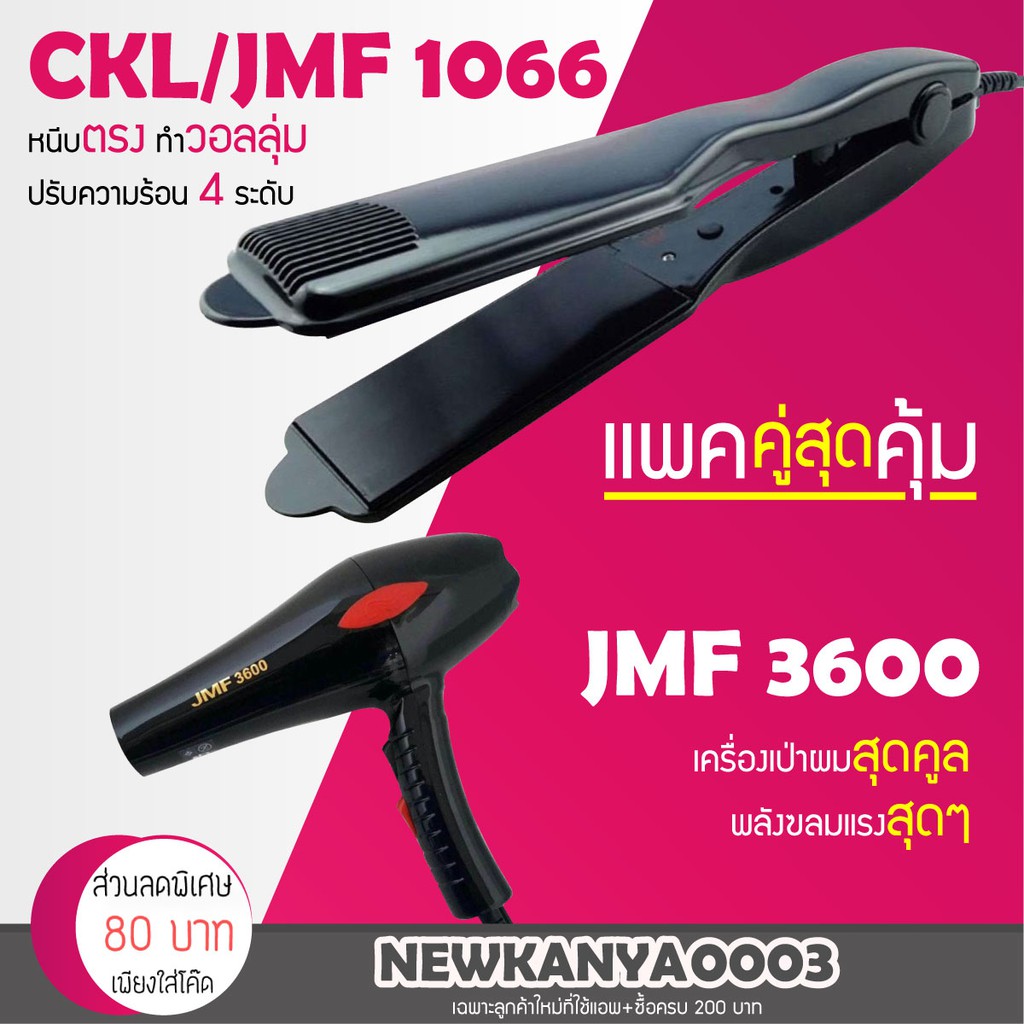 LIC 🔥 แพ็คคู่สุดคุ้ม เครื่องหนีบผม CKL / JMF 1066 ที่หนีบผม หนีบตรง หนีบเงา+ไดร์เป่าผม เครื่องเป่าผม ที่เป่าผม CKL 3600