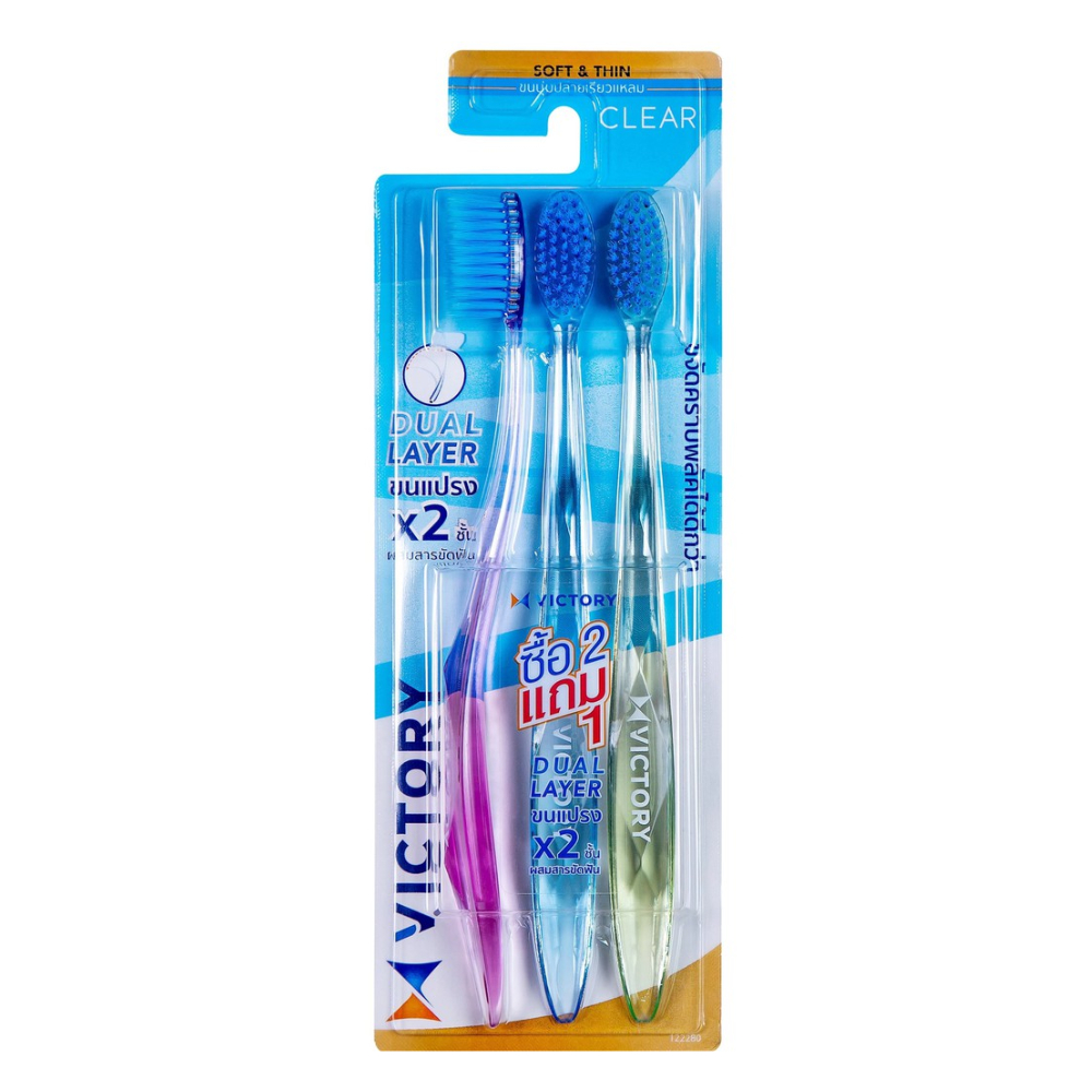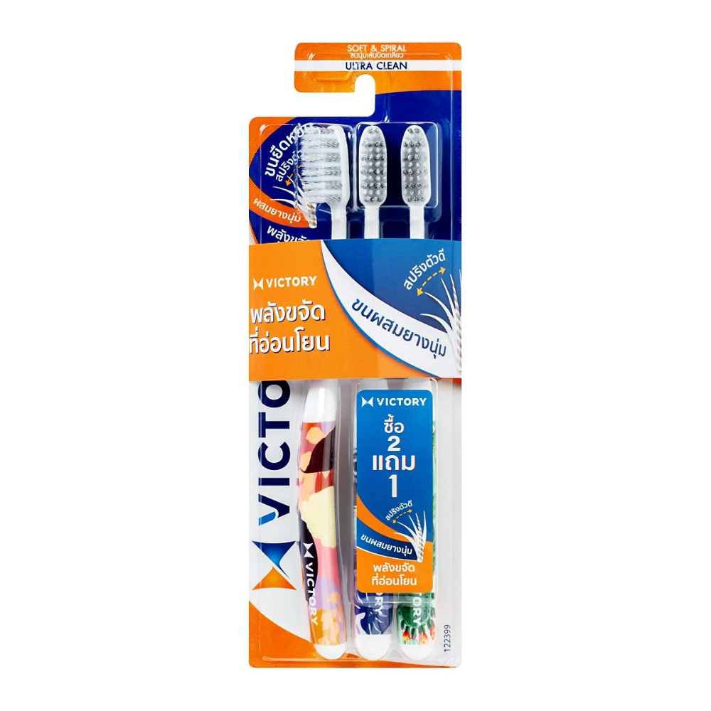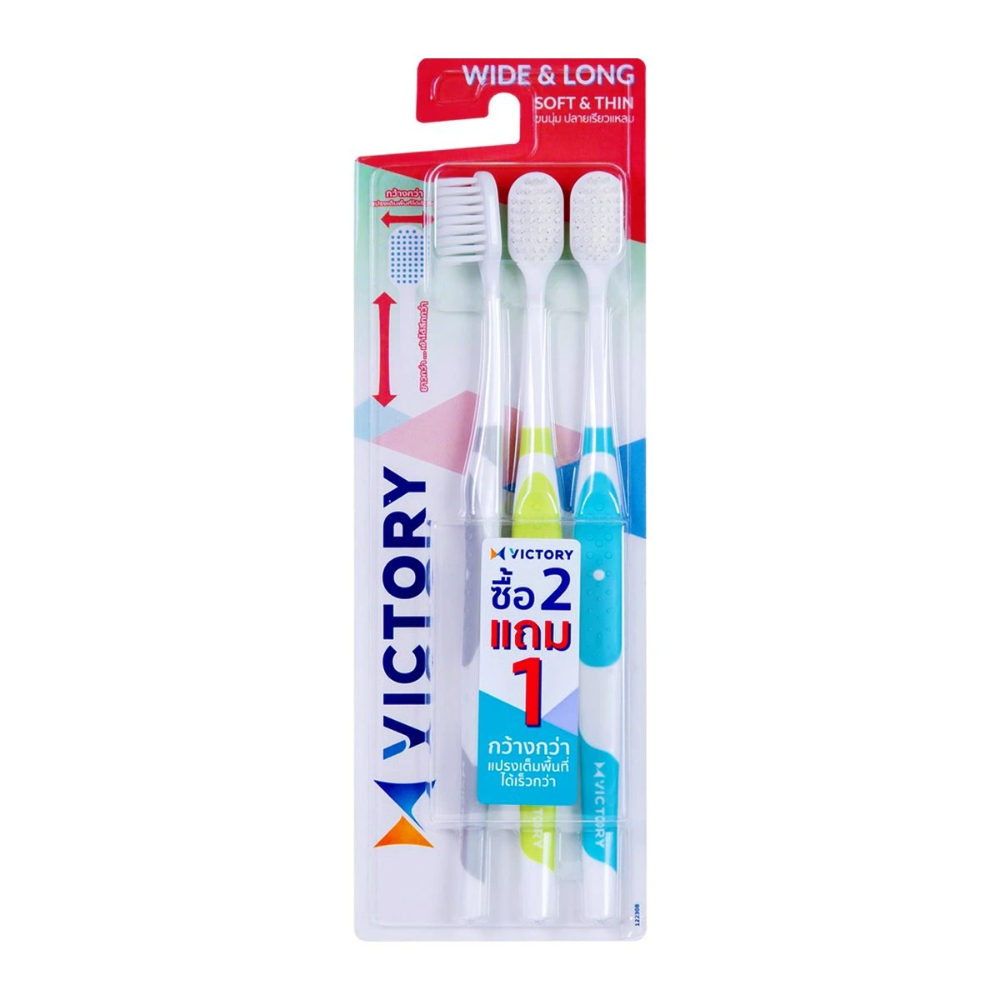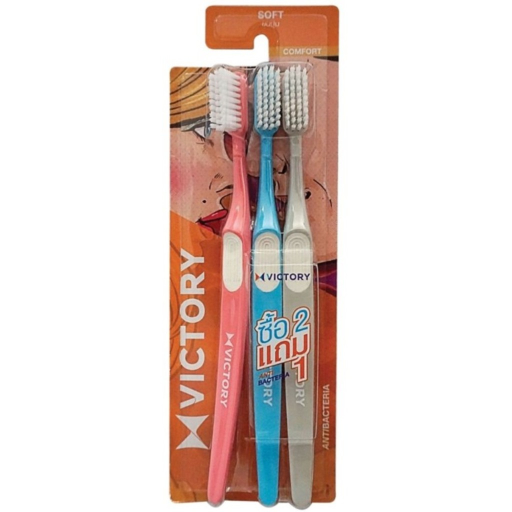 Victory วิคตอรี่ แปรงสีฟัน ขนแปรงนุ่ม ปลอดภัยกับเหงือกและฟัน แพ็ค 2+1