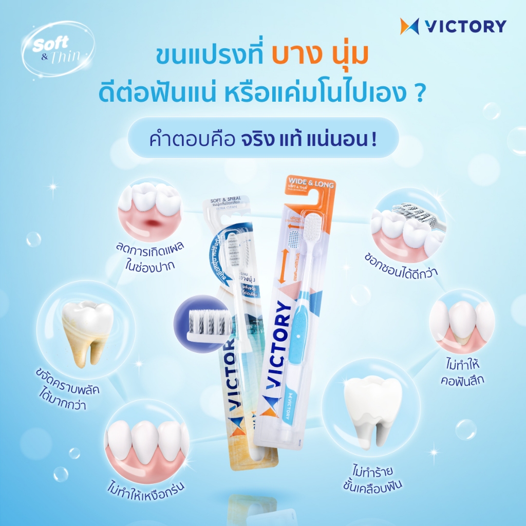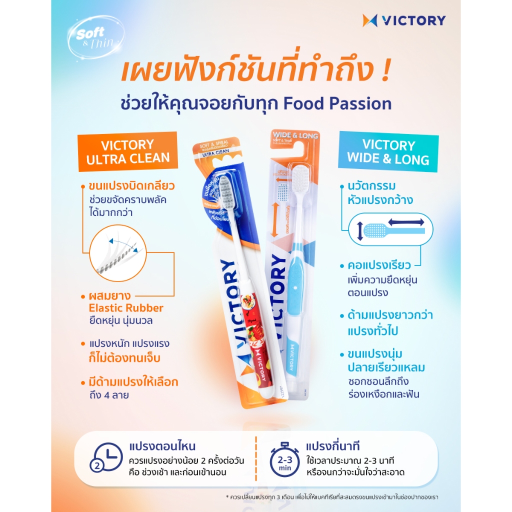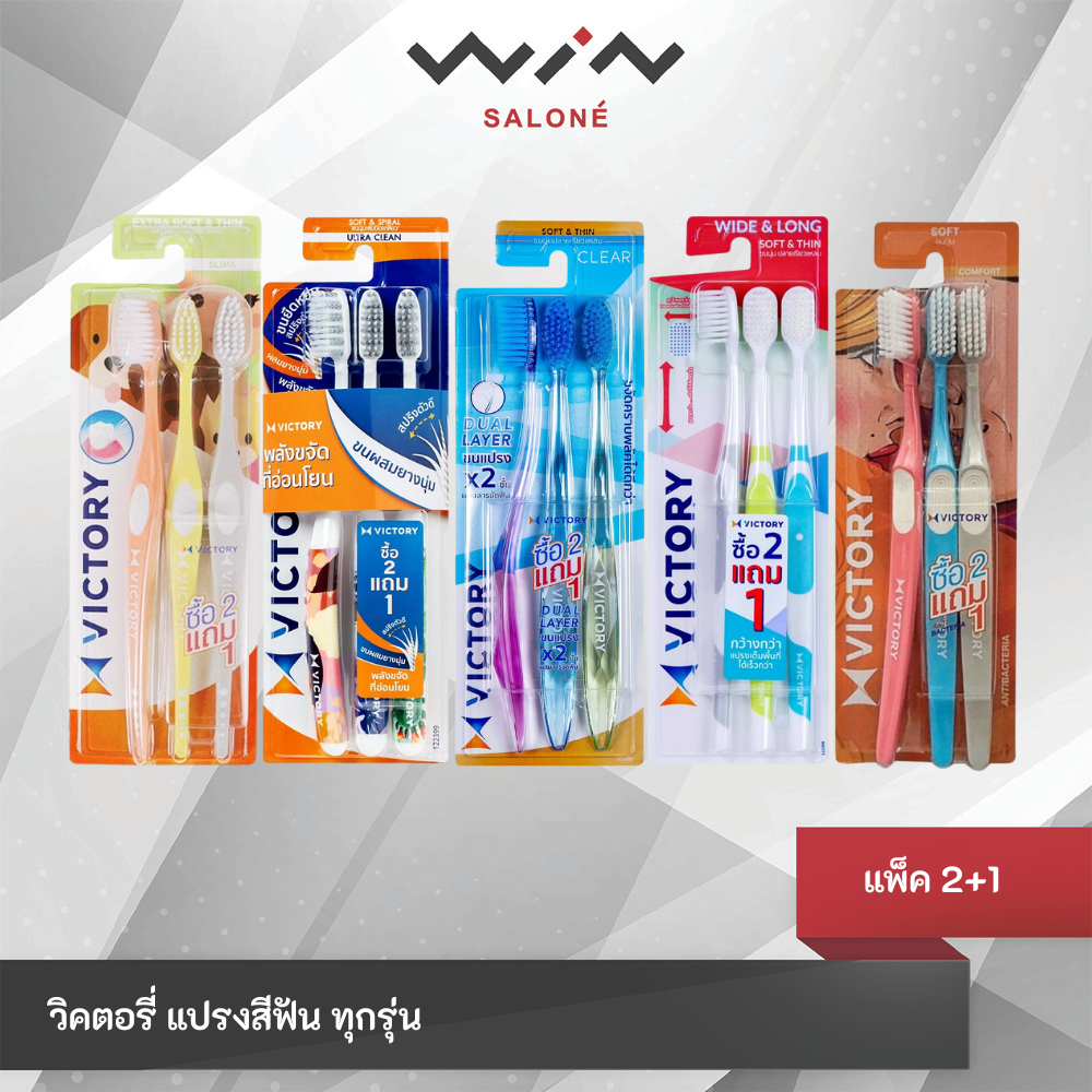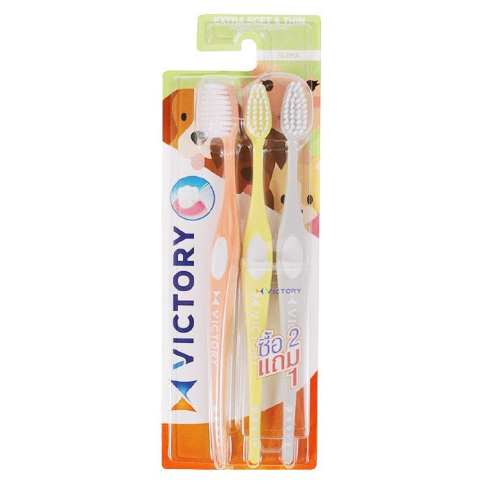 Victory วิคตอรี่ แปรงสีฟัน ขนแปรงนุ่ม ปลอดภัยกับเหงือกและฟัน แพ็ค 2+1