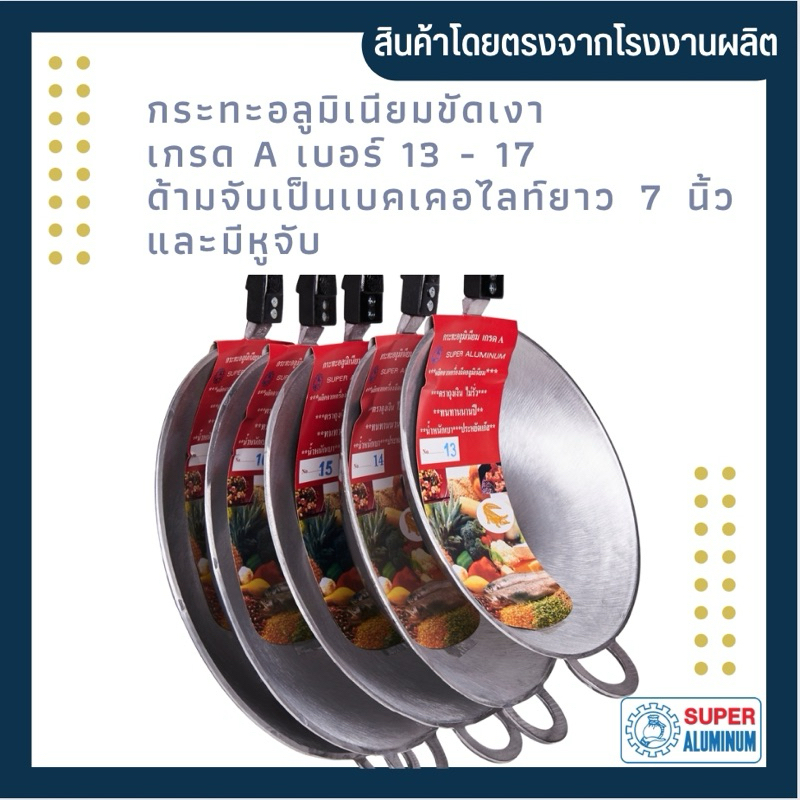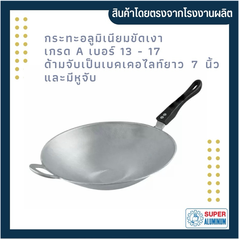 กระทะ กระทะก้นลึก กระทะอลูมิเนียมขัดเงาเกรด A เบอร์13-17 ด้ามจับเป็นเบคเคอไลท์ยาว 7 นิ้ว