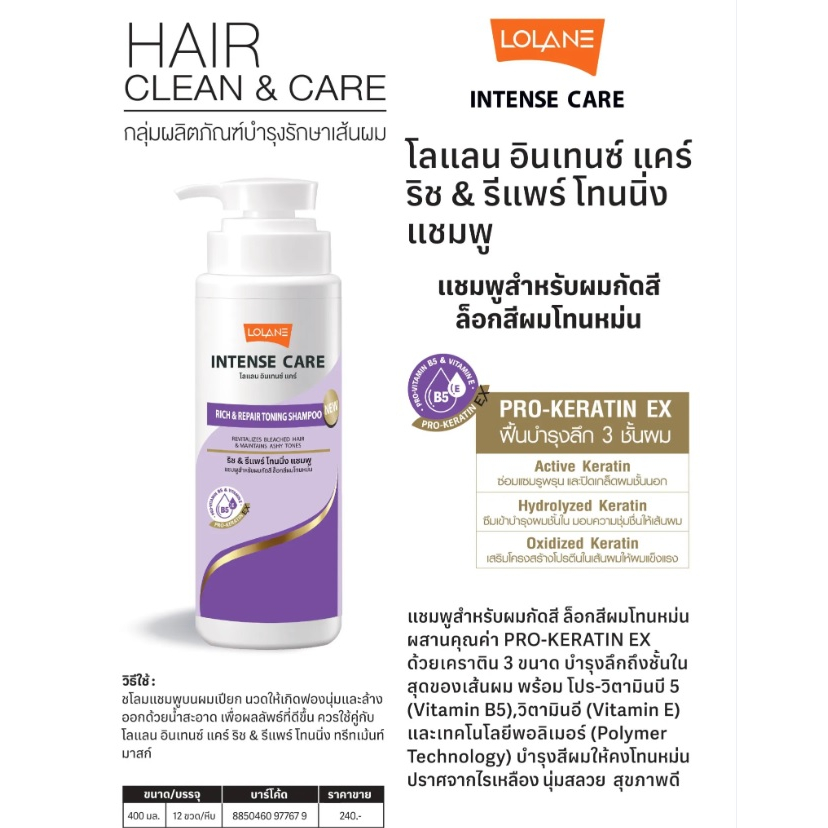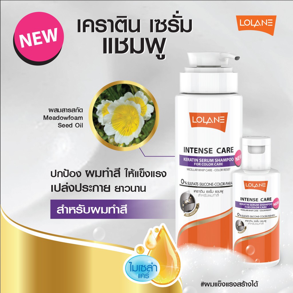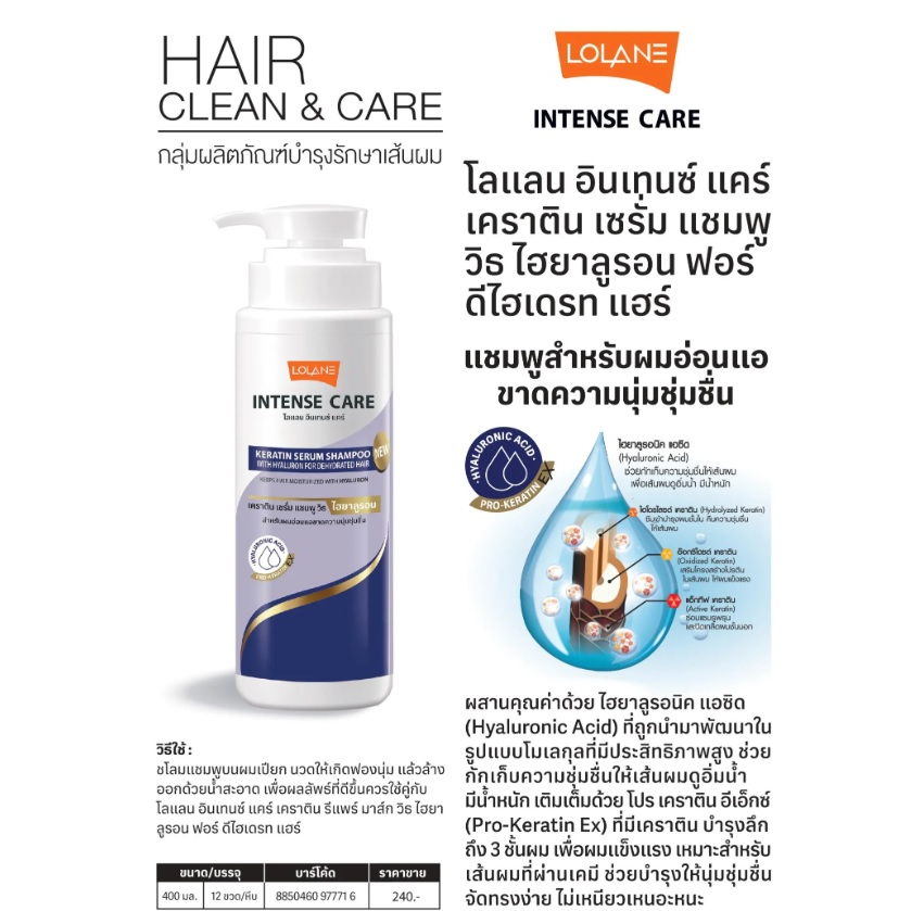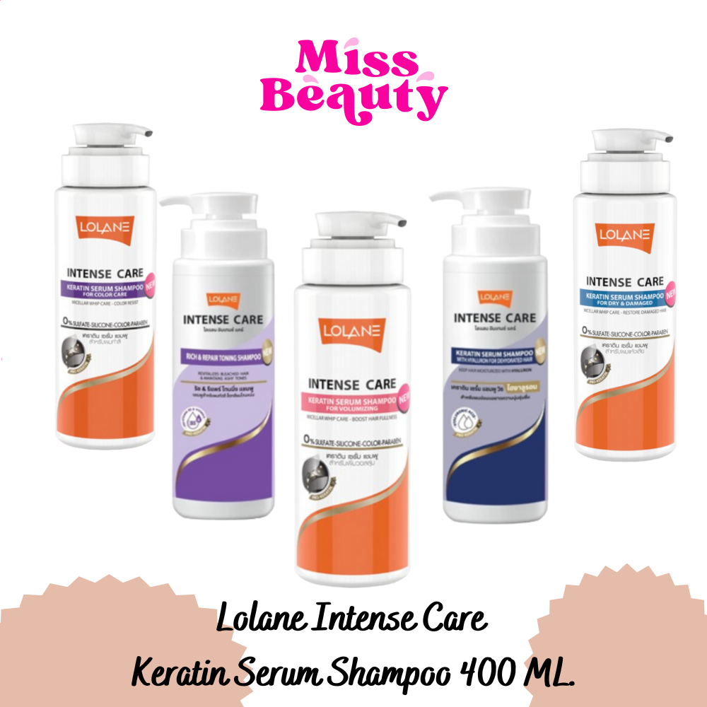 Lolane Intense Care Keratin Serum Shampoo โลแลน อินเทนซ์ แคร์ เคราติน เซรั่ม แชมพู สูตร ไมเซล่า แคร์ 400 มล.