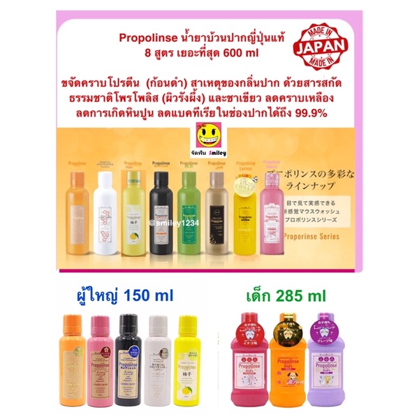 น้ำยาบ้วนปาก เด็ก ผู้ใหญ่ Propolinse ญี่ปุ่นแท้ ขนาด150 , 600 ml ขจัดคราบโปรตีน สาเหตุของกลิ่นปาก