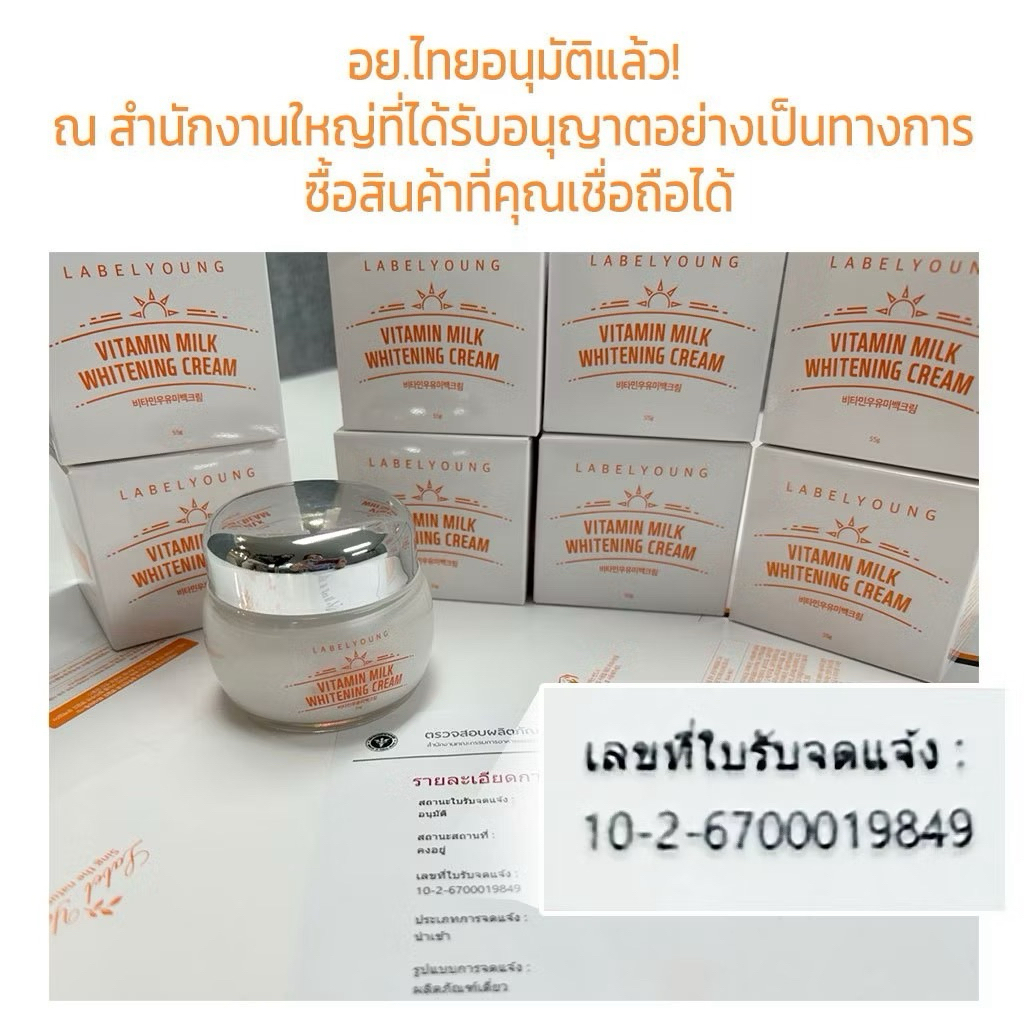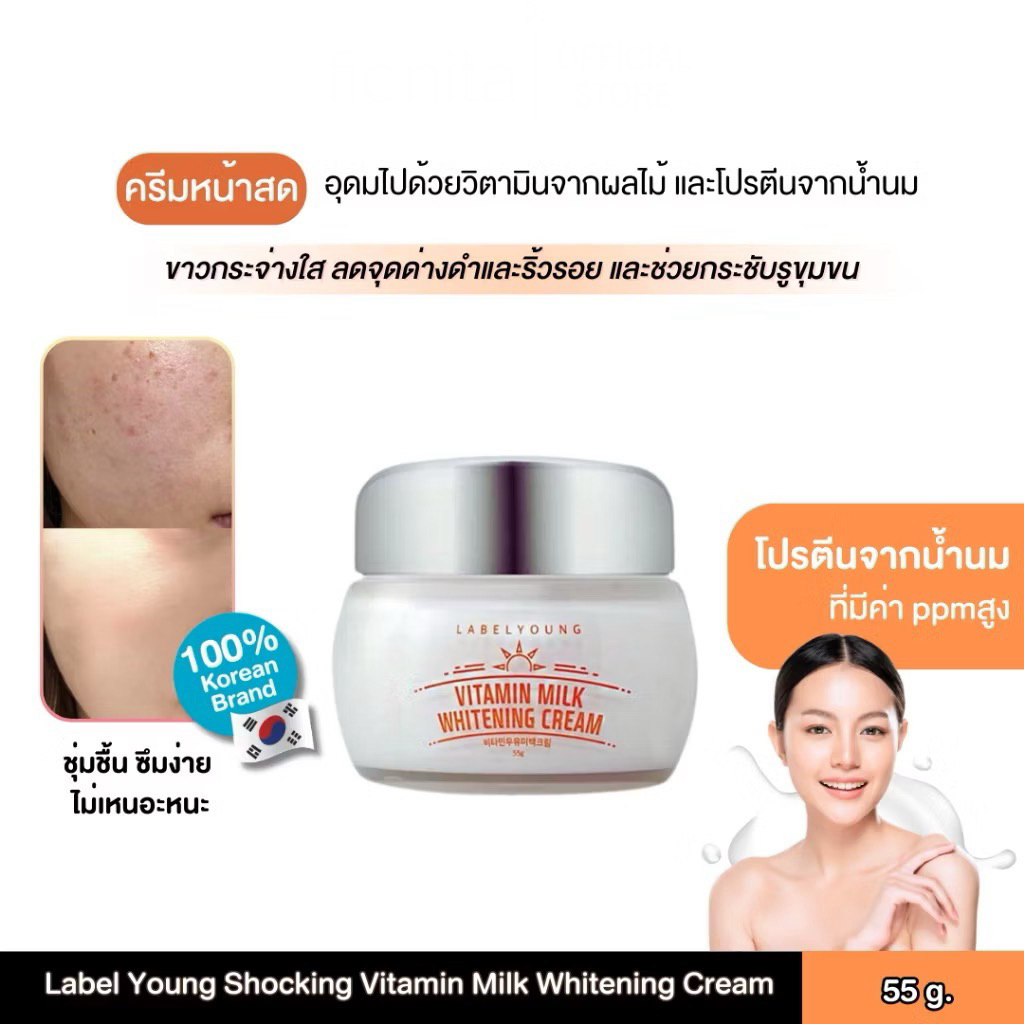 ครีมหน้าสดกป.ขาว🥛LABELYOUNG Vitamin Milk Whitening Cream (55 g.)