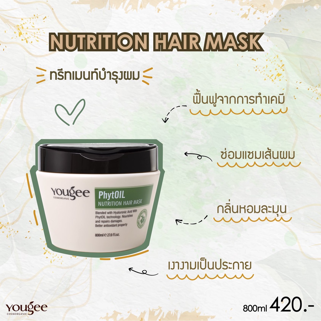 Yougee PhytOil Nutrition Hair Mask 30ml. ยูจี มาส์กเข้มข้น แบบซอง 30มล. สำหรับผมเสีย