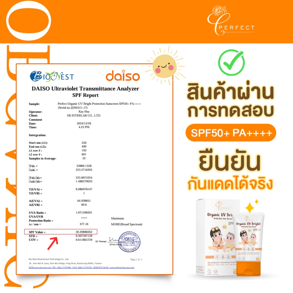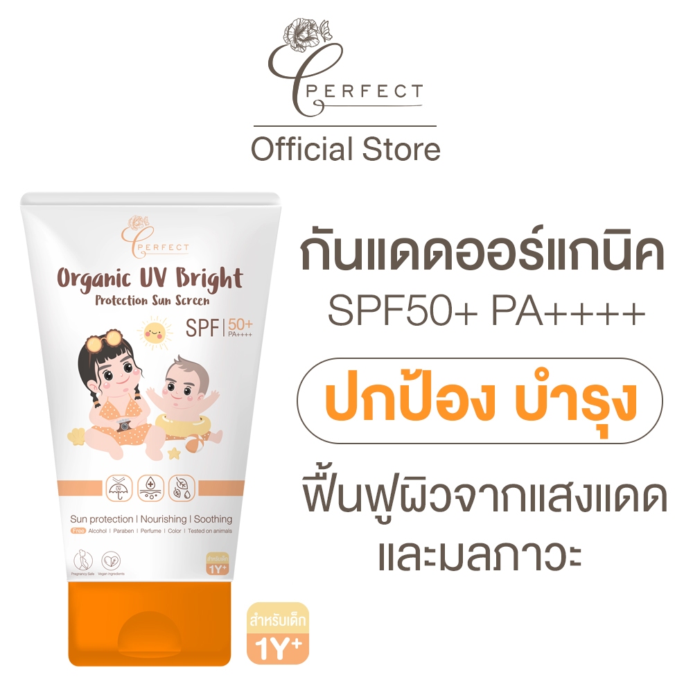 PERFECT กันแดดเด็ก ออร์แกนิค ปกป้องแสงแดด บำรุงผิวใส ปลอบประโลมผิวเย็น ทาซ้ำได้ตลอดวัน เนื้อบางเบา แตกตัวเป็นน้ำ