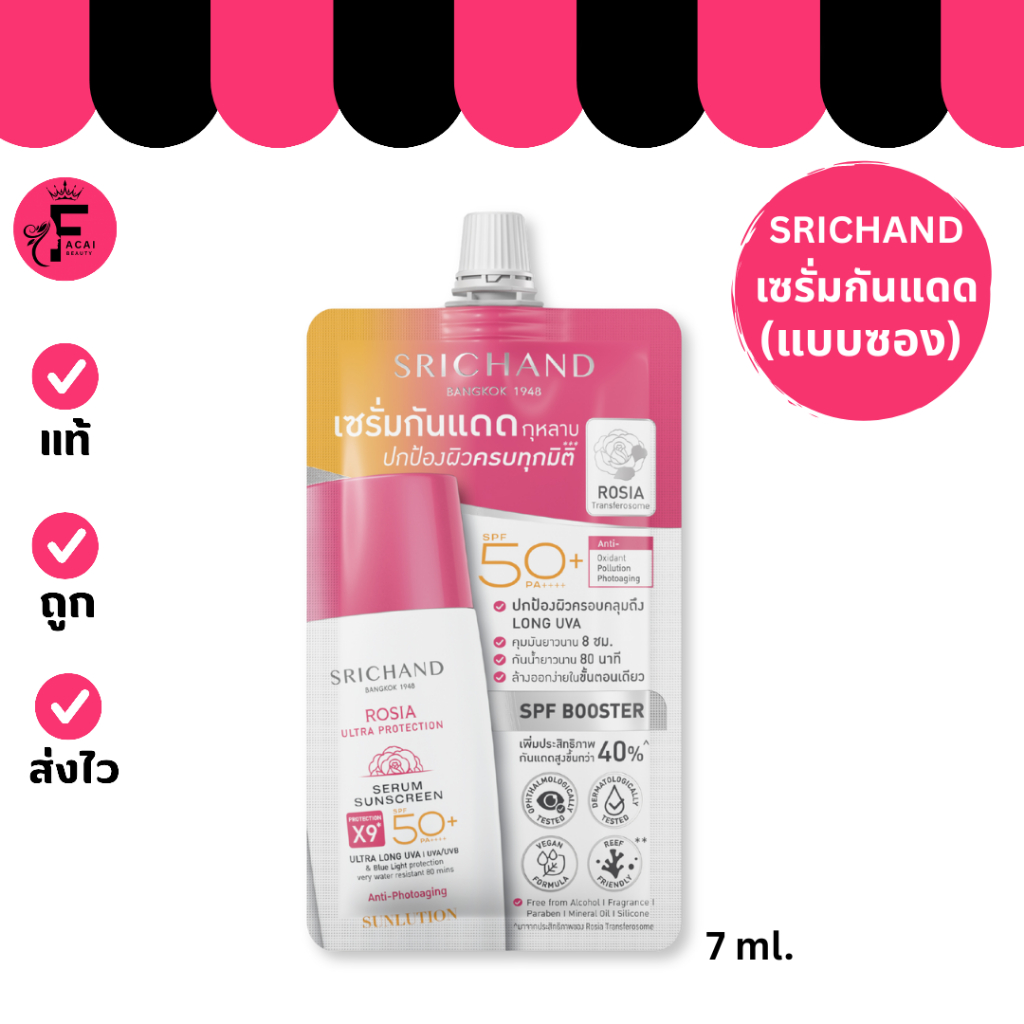 (1 ซอง) Srichand Sunlution Rosia ศรีจันทร์ ซันลูชั่น โรเซีย อัลตร้า เซรั่มซันสกรีน (7 ml.)