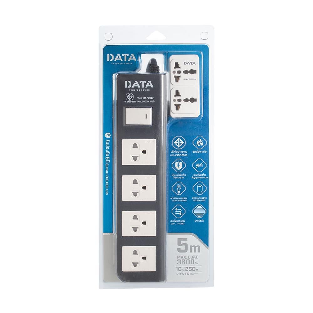 DATA รางปลั๊กไฟ 4ช่อง 1สวิตช์ APDW424 16 แอมป์ 5 ม. สีดำ จัดส่งโดย HomePro