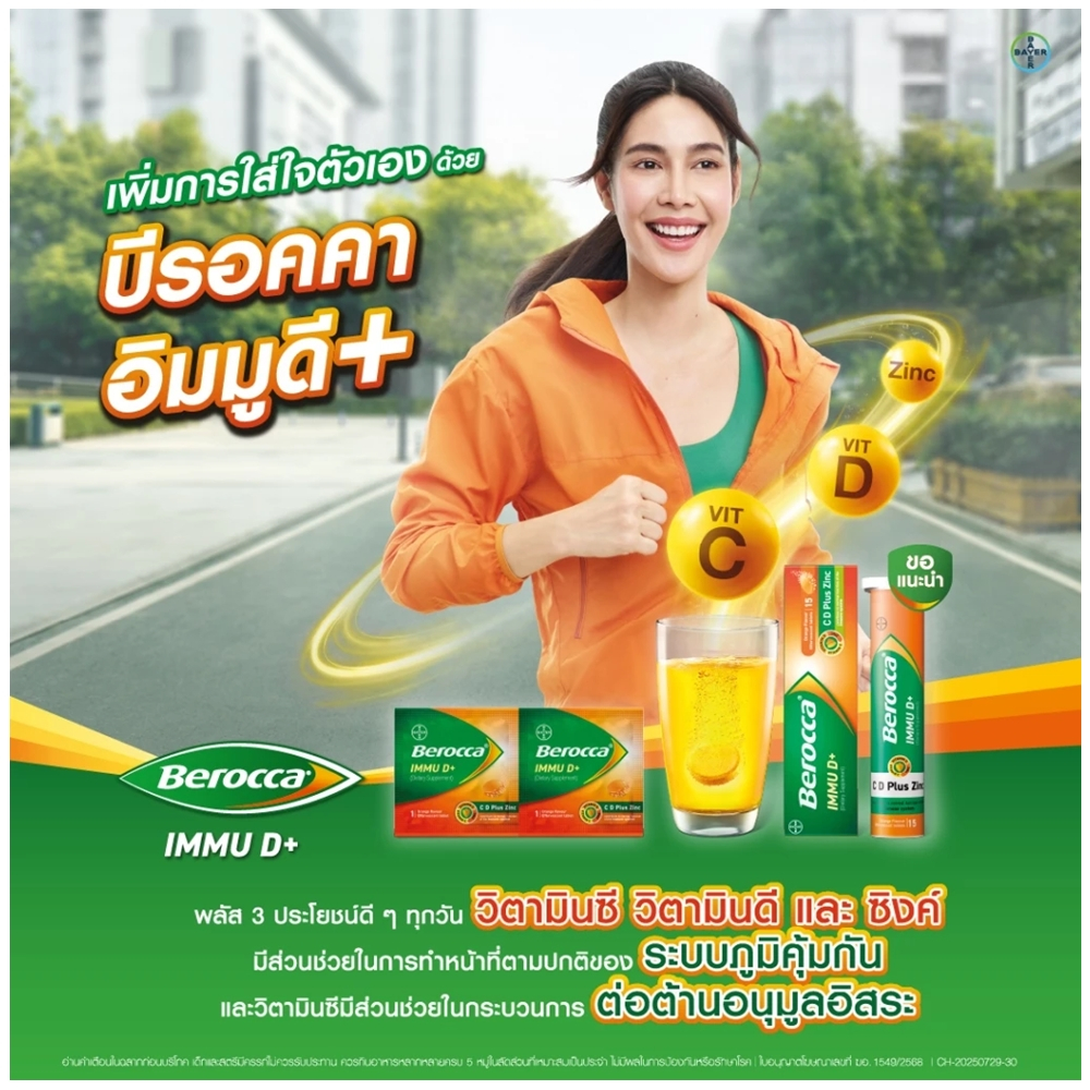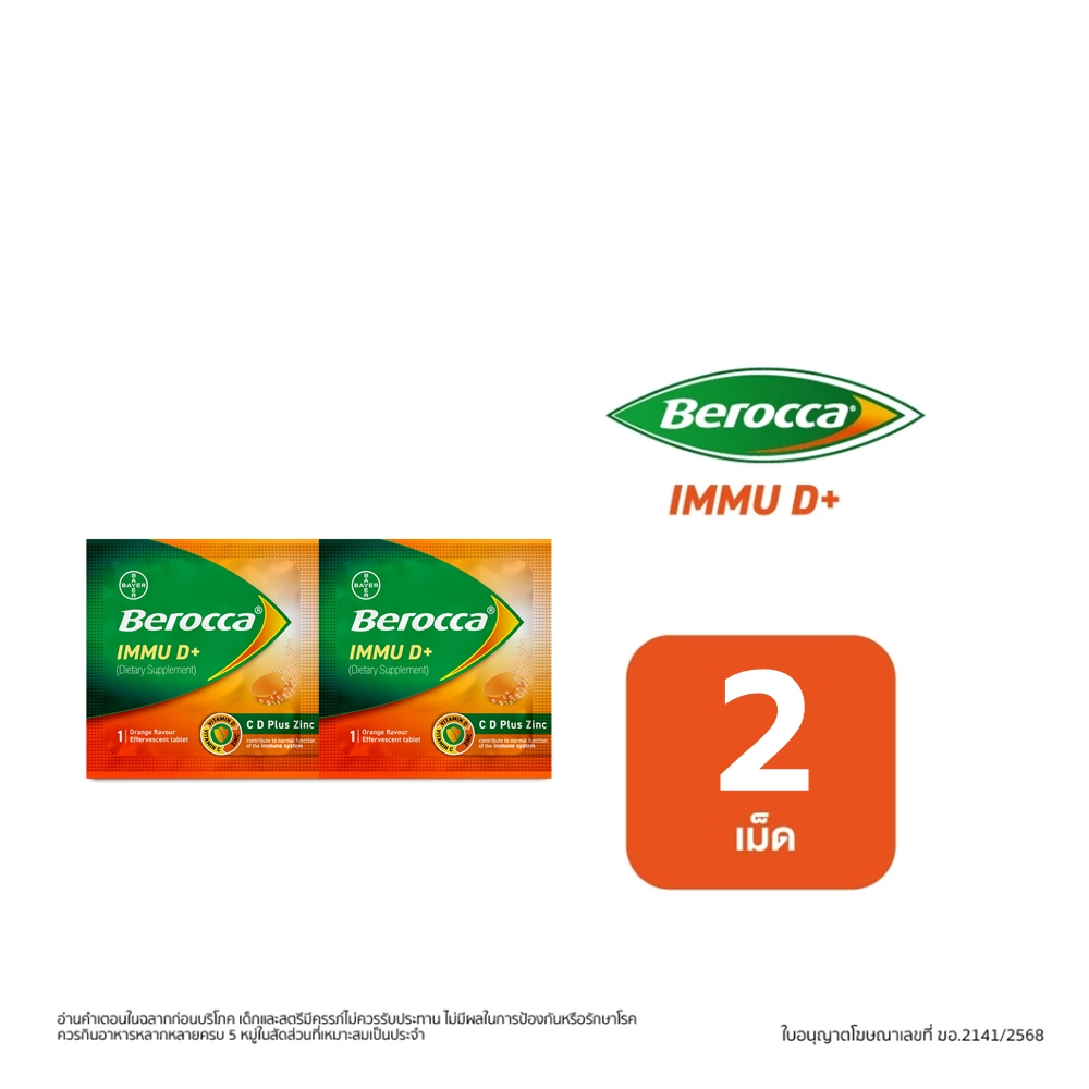 Berocca IMMU D+ (Dietary Supplement) 2 Tablets บีรอคคา อิมมู ดี พลัส (ผลิตภัณฑ์เสริมอาหาร) แบบเม็ดฟู่ละลายน้ำ 2 เม็ด