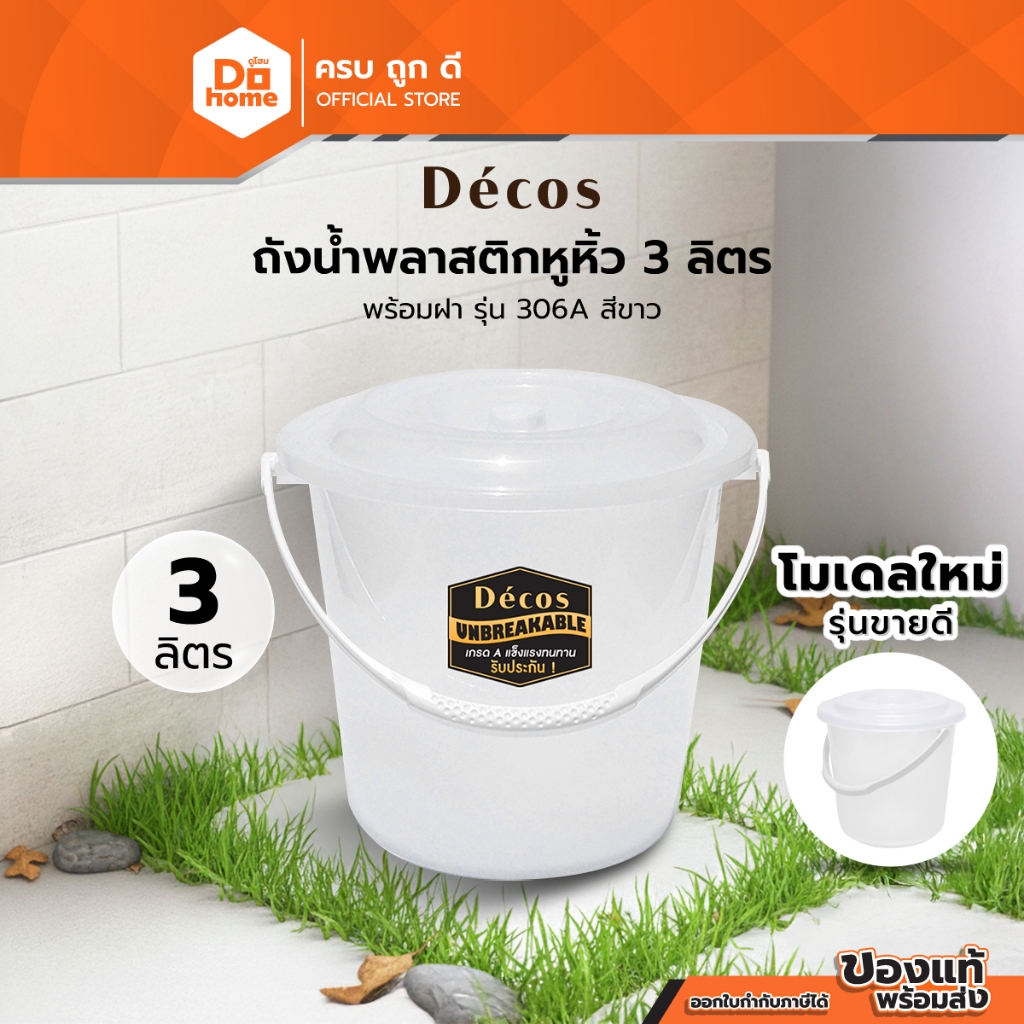 Decos ถังน้ำพลาสติกหูหิ้ว 3 ลิตร พร้อมฝา รุ่น 306A สีขาว |BAI|