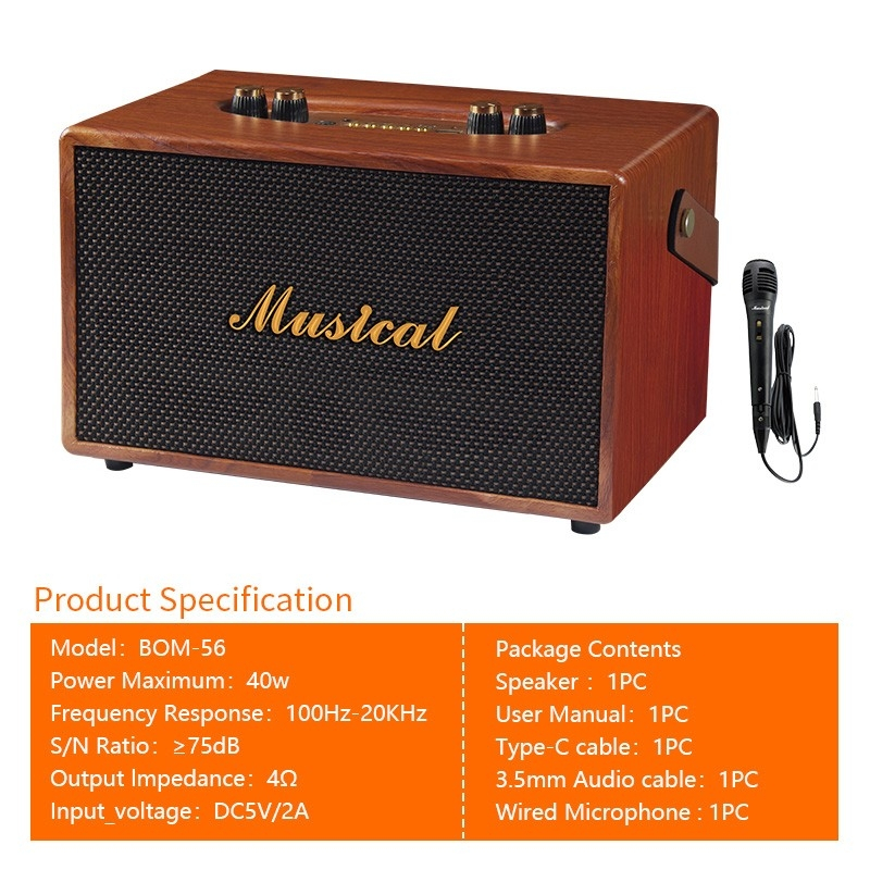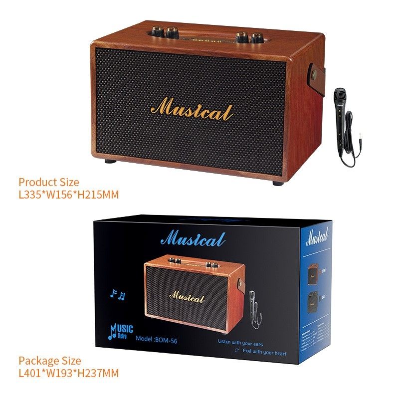 [Exclusive Online]d-power ลำโพงบลูทูธสไตล์เรโทร รุ่น BOM-55,BOM-56 กำลังขับ 40 วัตต์ ลำโพง 4,5 นิ้ว x2 ฟรีไมค์สาย 1 ตัว