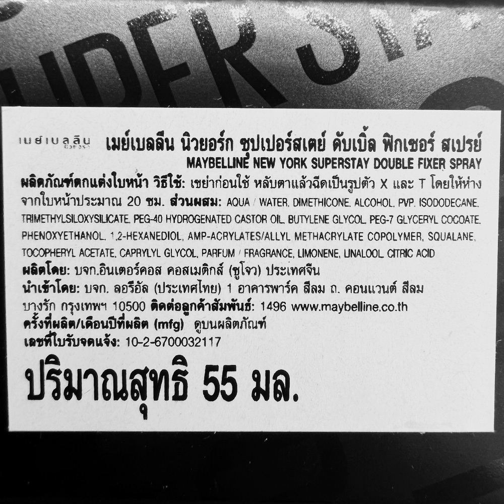 Maybelline Super Stay Double Fixer Setting Spray สเปรย์ล็อคเมคอัพ กันน้ำ กันเหงื่อ คุมมัน 55 ML.